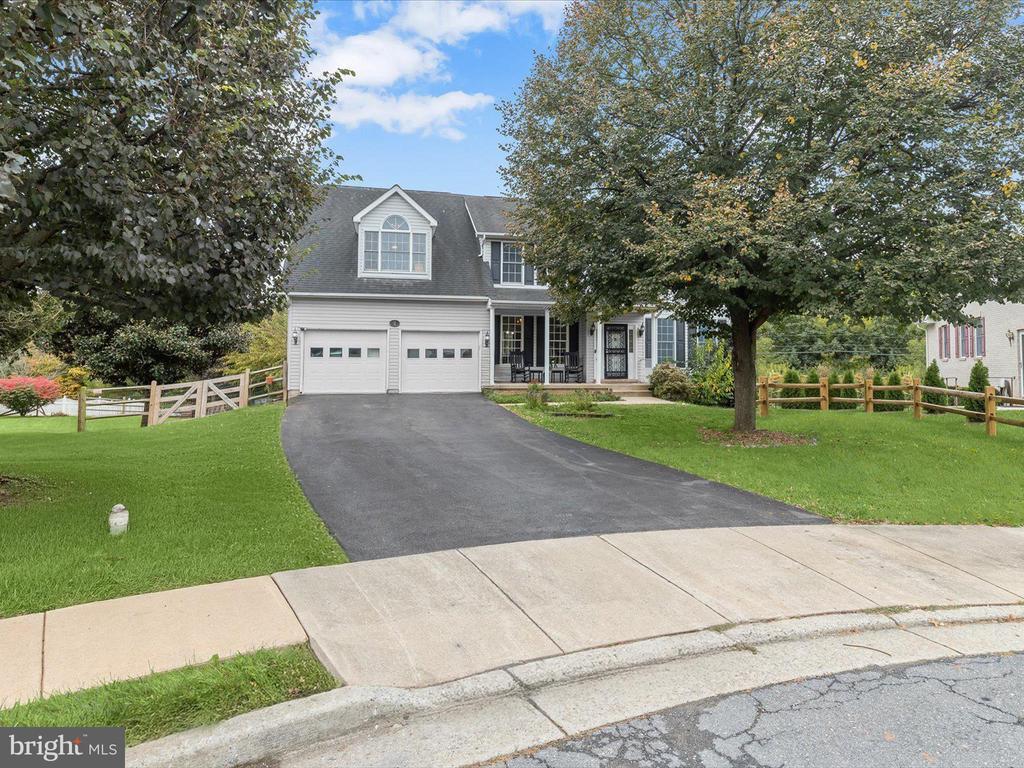 Welcome to 9 Todd Court, nestled in the picturesque community of Bennett Estates. This inviting home features a two-story foyer that opens to a private office with French doors on one side and a dining room on the other each with hardwood floors. The eat-in kitchen is equipped with ample cabinetry, stainless steel appliances, and a breakfast bar, seamlessly connecting to the family room highlighted by a charming bay window. A powder room, laundry room, garage access, and entry to the rear yard complete the main level. Upstairs, the expansive primary suite offers a sitting area, four walk-in closets, and an en-suite full bath. Three additional bedrooms and a full bath complete the upper level. The unfinished lower level, featuring full-size windows and a walkout to the backyard, provides endless potential for customization. Outdoor amenities include a fenced backyard, a relaxing patio, and an attached two-car garage all perfectly situated on a quiet cul-de-sac. Some photos have been virtually staged.