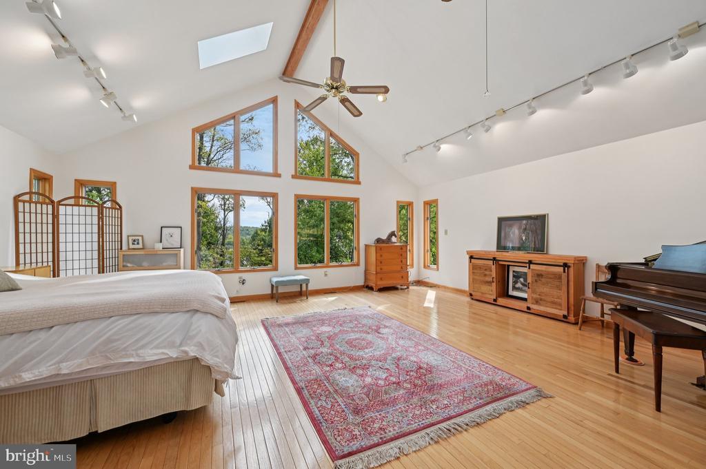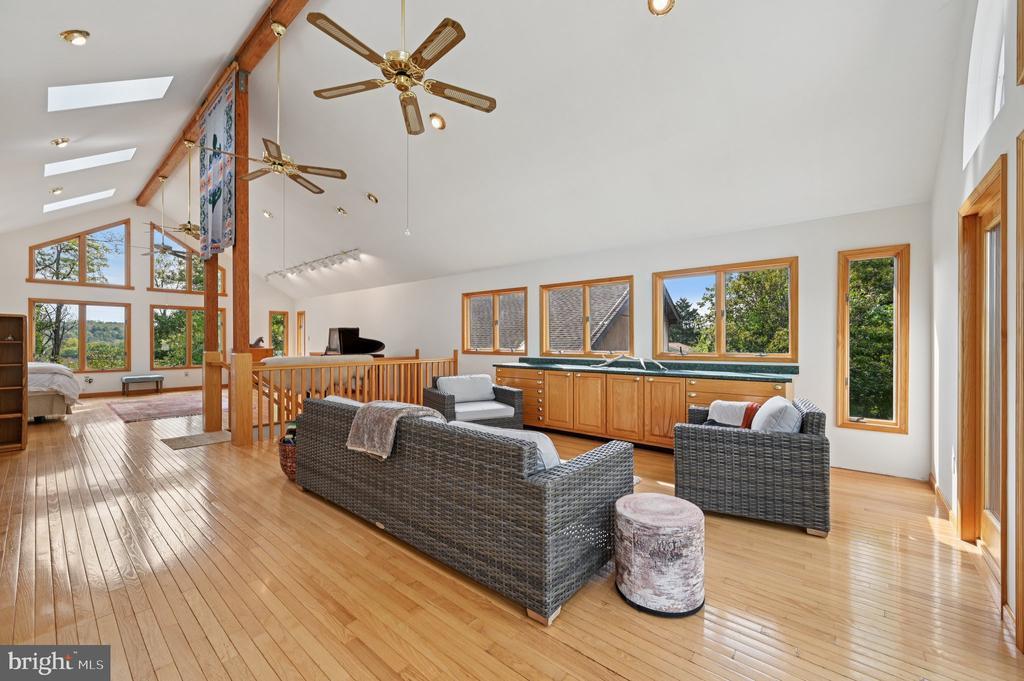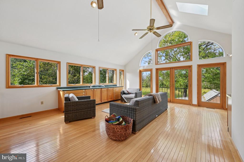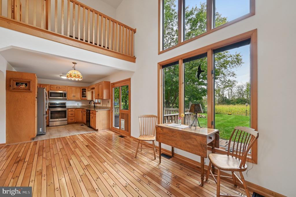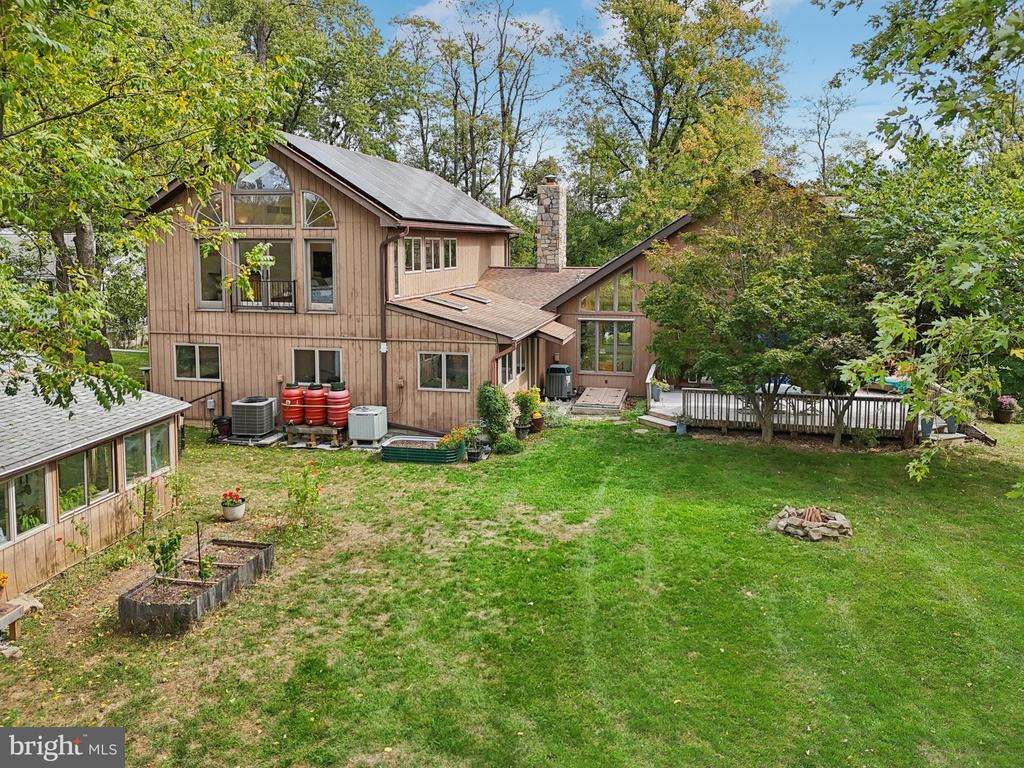 Welcome to this distinctive contemporary home that blends light-filled living spaces with timeless charm. Step inside and you’re greeted by soaring ceilings, dramatic windows, and a spacious main level designed for gathering and entertaining. The kitchen features warm wood cabinetry, ample counter space, and an easy flow into the dining and living areas. A large deck off the main level expands the living space outdoors, offering peaceful views of the fenced yard framed by mature trees. Upstairs, generously sized bedrooms provide comfort and privacy, each with large windows and plenty of natural light. The suite over the garage offers a unique getaway that's perfect for a private getaway or can offer ample space for a home business. The finished lower level adds exceptional versatility, complete with a wood stove, full bath, laundry, storage, and open space perfect for a family room, hobby area, or guest suite. Thoughtful details, arched accents, and abundant built-ins enhance the home’s character. Outdoors, enjoy a backyard retreat with a firepit, space for gardening or play, an outbuilding that's ideal for a greenhouse, and sustainable features like solar panels and rain barrels that reduce utility costs. There is also an added bonus room on the main floor that comes with loads of potential to be an in-law suite, workshop, or hobby room. The property combines a sense of privacy with convenient access to nearby amenities, making it ideal for both everyday living and entertaining. With its unique design, flexible layout, and eco-friendly features, this home is truly one of a kind.