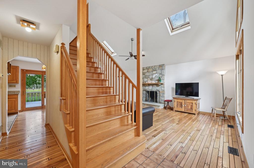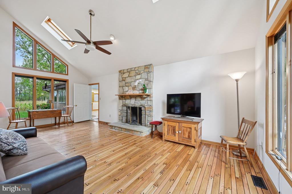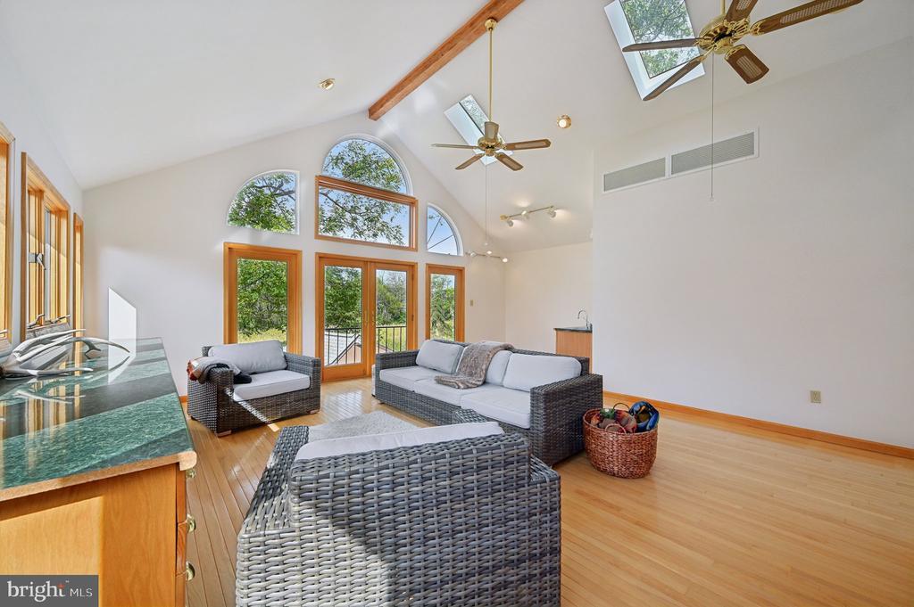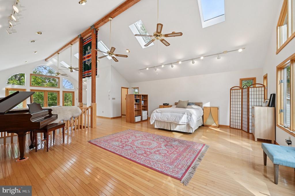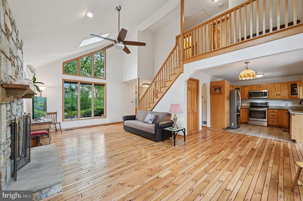 Welcome to this distinctive contemporary home that blends light-filled living spaces with timeless charm. Step inside and you’re greeted by soaring ceilings, dramatic windows, and a spacious main level designed for gathering and entertaining. The kitchen features warm wood cabinetry, ample counter space, and an easy flow into the dining and living areas. A large deck off the main level expands the living space outdoors, offering peaceful views of the fenced yard framed by mature trees. Upstairs, generously sized bedrooms provide comfort and privacy, each with large windows and plenty of natural light. The suite over the garage offers a unique getaway that's perfect for a private getaway or can offer ample space for a home business. The finished lower level adds exceptional versatility, complete with a wood stove, full bath, laundry, storage, and open space perfect for a family room, hobby area, or guest suite. Thoughtful details, arched accents, and abundant built-ins enhance the home’s character. Outdoors, enjoy a backyard retreat with a firepit, space for gardening or play, an outbuilding that's ideal for a greenhouse, and sustainable features like solar panels and rain barrels that reduce utility costs. There is also an added bonus room on the main floor that comes with loads of potential to be an in-law suite, workshop, or hobby room. The property combines a sense of privacy with convenient access to nearby amenities, making it ideal for both everyday living and entertaining. With its unique design, flexible layout, and eco-friendly features, this home is truly one of a kind.