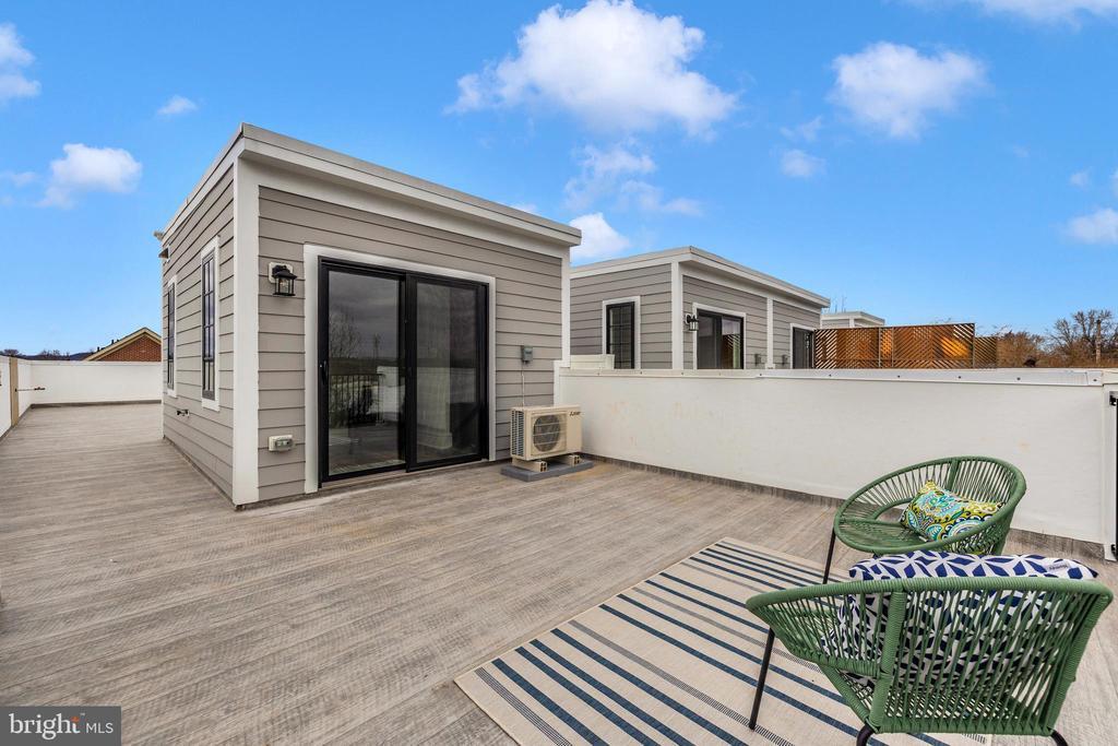 ***THE LAST MEWS ON MAXWELL TOWNHOUSE AVAILABLE – 2024 FCBIA BEST TOWNHOUSE!*** This END UNIT new construction 4-story townhouse with elevator and a 54' rooftop deck (the largest in Frederick!) is a true one-of-a-kind. With east–west orientation, you can enjoy both sunrise and sunset daily from your living room or rooftop deck. Nestled in picturesque Downtown Frederick—just steps from the city’s best dining, shopping, and entertainment—no detail was overlooked, and no expense spared in the creation of these award-winning homes. The Mews on Maxwell features an open-concept design with the latest smart home technology (garage, doorbell, HVAC, and security system), plus a vacuum elevator for modern convenience. Its striking exterior blends red and black brick, black casement windows, custom iron railings, hinged divided-light doors, galvanized gutters, and Hardie plank siding. Each unit includes two private parking spaces, a large backyard with hardscaping, red brick paver patio, privacy fence, utility screen, and professional landscaping. Overflow parking is also available nearby—all with no HOA fees. Inside, the chef’s kitchen stuns with quartzite countertops, natural gas cooktop, double oven, and LG ThinQ refrigerator with round craft ice. A waterfall island and fireplace surround in natural stone provide dramatic focal points, while custom cabinetry with glass doors, a quartzite kitchen desk, and built-in storage offer both beauty and function. Perfect for entertaining, the dining and family rooms are warmed by a 46" gas fireplace, and a walk-out balcony overlooks the backyard. The third-floor primary suite opens to a Juliet balcony and includes dual custom closets with built-ins. The spa-like bathroom features natural stone counters, a black soaking tub, dual shower heads with handheld, extra-wide bench, vessel sinks, waterfall faucets, and backlit mirrors. All bathrooms are finished with designer tile to the ceiling, niches, and custom lighting. The fourth-floor penthouse offers a built-in bar, half bath, and private HVAC system, leading out to a 54' rooftop deck with both east- and west-facing views. Gas and outdoor TV hook-ups are already in place. ✨ Experience Downtown Frederick luxury living at its very best