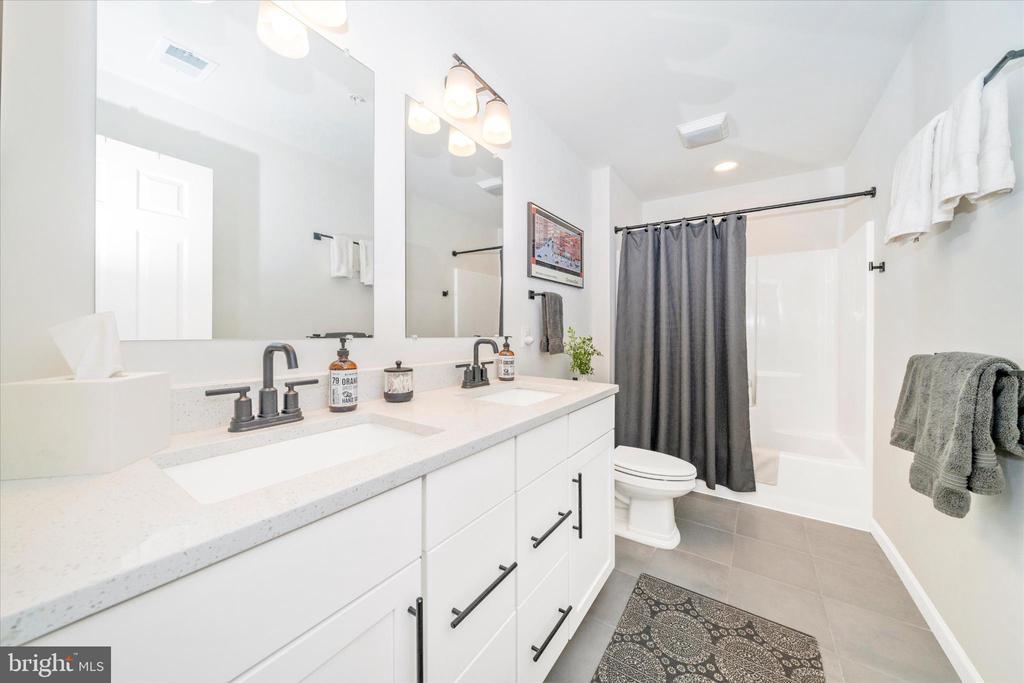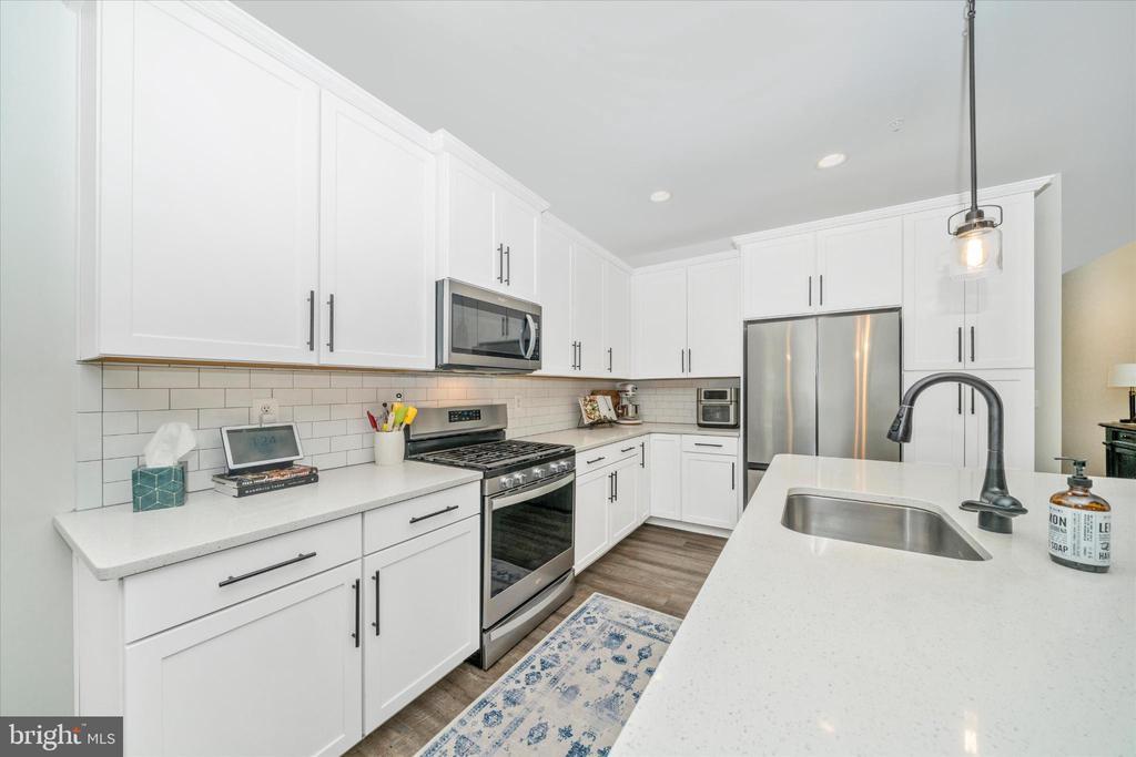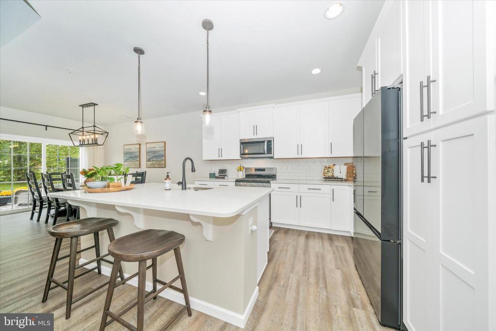 Excellent value, bigger than most townhomes, not age restricted - Better than a model home, this stunning Caspian model (Correct Square footage is 2,458 above-grade) is immaculate and offers more than $130k worth of upgrades including a 4 foot extension, custom plantation window shutters on every window, upgraded cabinetry topped with crown molding and pull-out shelving, upgraded quartz counters, Stainless appliances, upgraded flooring, upgraded light fixtures, a whole house surge protector, a custom paver patio with sitting wall, and Nest security cameras to name just a few features and there is no waiting for it to be built! This home also sits on one of the best lots in the neighborhood with HOA maintained open space in front of and behind this home so you will never have a home blocking your view or looking into your private space. With an exquisite blend of modern luxury and serene living, this stunning contemporary was thoughtfully designed for easy living and open site-lines. The gourmet kitchen is a chef's dream, featuring gas cooking, abundant cabinet space and a spacious island perfect for entertaining. The living area, complete with a vaulted ceiling, and cozy gas fireplace, seamlessly flows into the dining area, ideal for gatherings (the table sits 8 without squeezing). Retreat to the primary suite, where you'll find cathedral ceilings, space for your biggest furniture, a deep walk-in closet with custom built-ins and a spa-like bathroom. The main level also includes a home office, powder room and laundry room. The second floor hosts a family room and 2 additional generous sized bedrooms with enviable closet space in each and a second full bath with double sinks. Outside, the custom paver patio allows you to enjoy dining alfresco with unobstructed views to the tree line and sunset views. The city park with pavilion playground and dog park are a few hundred yards from your front door. The Kellerton neighborhood has phenomenal community amenities including a club house, fitness center, pool, firepit, basketball court and carefully planned open spaces all located just a few miles from major commuter routes, downtown Frederick’s Historic District, shopping and dining.