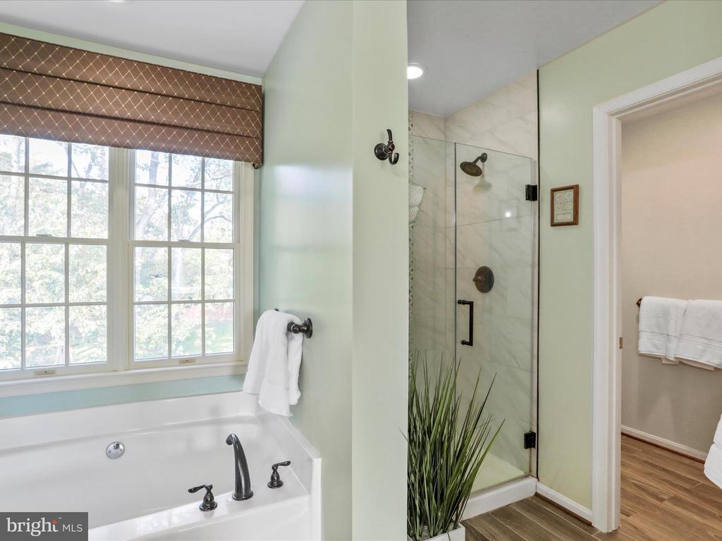Shades/Blinds, Upgraded Countertops, Master Bath(s), Wood Floors, Attic, Soaking Tub, Stall Shower, Bathroom - Walk-In Shower, Chair Railing, Crown Molding, Formal/Separate Dining Room, Pantry, Recessed Lighting, Walk-in Closet(s)