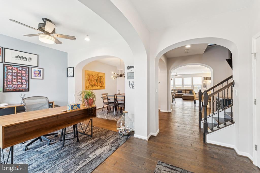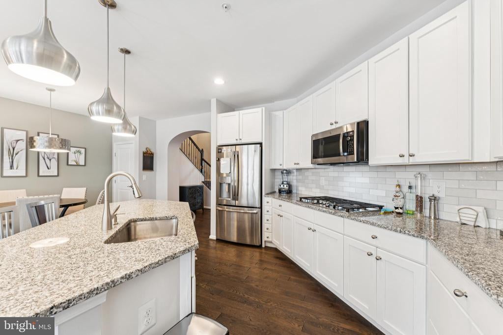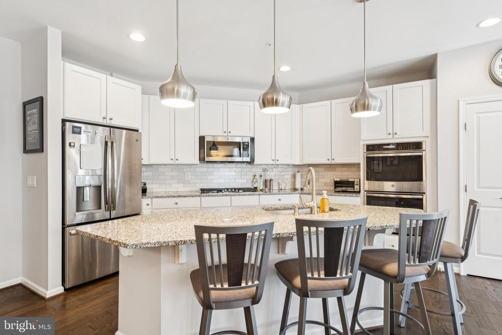 HUGE PRICE REDUCTION! Act now to grab this beautiful home! Over 4,000 square feet in this spectacular luxury townhouse in sought-after Worman's Mill! This home is the large Beauvais model with optional 4th floor! Welcome to this beautifully upgraded Beauvais luxury townhouse, built in 2018 and featuring the optional added loft for exceptional living space and versatility. This spacious home offers elegant finishes, thoughtful upgrades, and a layout designed for both comfort and entertaining. Step inside to find gorgeous oak hardwood floors and an expansive open-concept main level enhanced by ceiling fans on every floor for year-round comfort. The entry and staircase feature upgraded iron balusters with a wooden handrail, adding a touch of modern elegance to the home's timeless design. The gourmet kitchen will impress with GE stainless steel appliances, granite countertops, a large center island with pendant lighting, soft-close cabinetry, a 5-burner gas cooktop, double wall ovens, and an abundance of storage—including a custom-built stylish coffee bar with locking fridge and additional cabinets. Upstairs, enjoy an amazing primary suite featuring two vanities, a soaking tub, and an oversized spa-style shower with bench seating. Closets include custom organizers for maximum efficiency. This level also offers two additional generously sized bedrooms, a full bathroom with a tub and dual sinks, and a conveniently located laundry room with built-in cabinetry and a stylish sliding barn door. One more level up, a spacious loft provides the perfect flexible area for a home office, playroom, or additional lounge space. The finished basement boasts a full bathroom, a large bonus room (currently used as a guest bedroom) with two ceiling fans, a spacious rec room with an egress window for natural light and safety, and lighted storage under the stairs. The storage room also includes a convenient wash sink and motion-activated lighting. Tech-savvy upgrades include two-stage heating/cooling with dual thermostats, TV outlets positioned behind each TV for a clean, wire-free look, and recessed lighting throughout. Fresh paint throughout and nearly-new condition make this home truly move-in ready. Enjoy the low-maintenance backyard with beautiful hardscaping, offering a private, peaceful retreat—no lawn care required! An external natural gas line makes outdoor grilling convenient, eliminating the need for propane tanks. A two-car detached garage offers easy private parking. Located in the desirable Worman’s Mill community, you'll have access to resort-style amenities including a clubhouse, fitness center, pool, tennis and pickleball courts, basketball, and a walkable village center with shopping and dining (new village shops just steps away!). Easy access to Route 15 and close proximity to Wegmans, restaurants, and downtown Frederick make commuting and daily errands a breeze. Don’t miss this opportunity to own this spacious, updated model in Worman’s Mill with unmatched space, style, and convenience!
