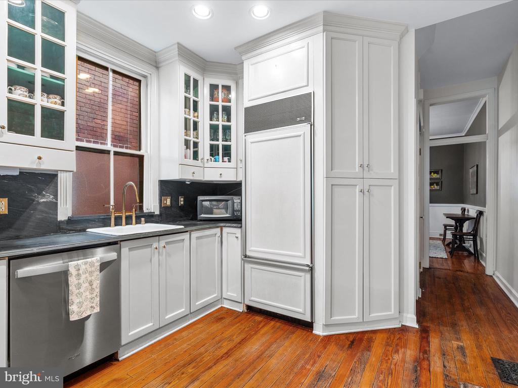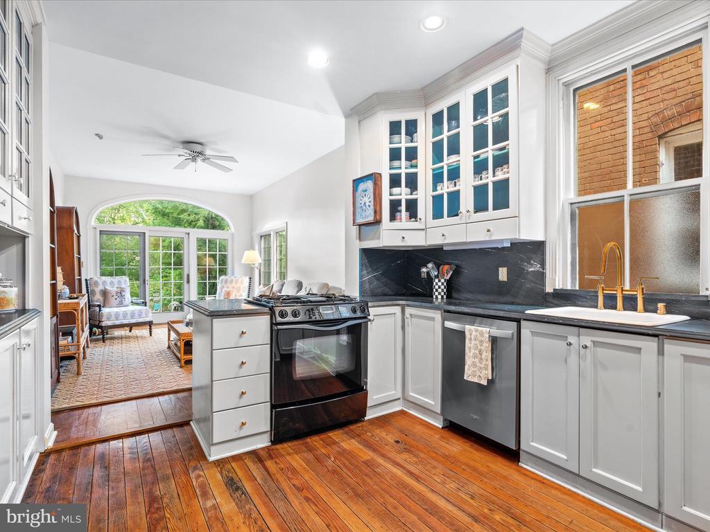 Welcome to 241 E Church Street — a beautifully restored residence that perfectly blends historic charm with modern sophistication. From the moment you arrive, the stately front entrance and glass-enclosed vestibule set the tone for the refined details that await inside. Step through the double doors into a formal sitting room featuring original shutters and an elegant gas fireplace. The spacious dining room, adorned with intricate moldings, provides the ideal setting for memorable gatherings. The charming kitchen opens to a light-filled rear addition that serves perfectly as a family room — a versatile space for relaxation or creativity. Upstairs, you’ll find three bedrooms and two full baths. The two guest bedrooms offer generous space and excellent closet storage, while the primary suite serves as a true retreat with skylights, a Juliet balcony, built-in storage, and a luxurious ensuite. Outside, experience a private oasis designed for serenity and outdoor enjoyment. The lower level offers additional storage space for convenience. Just a few blocks from downtown Frederick’s restaurants, shops, and cultural attractions, this home offers the perfect blend of privacy and walkable urban living. Welcome home!