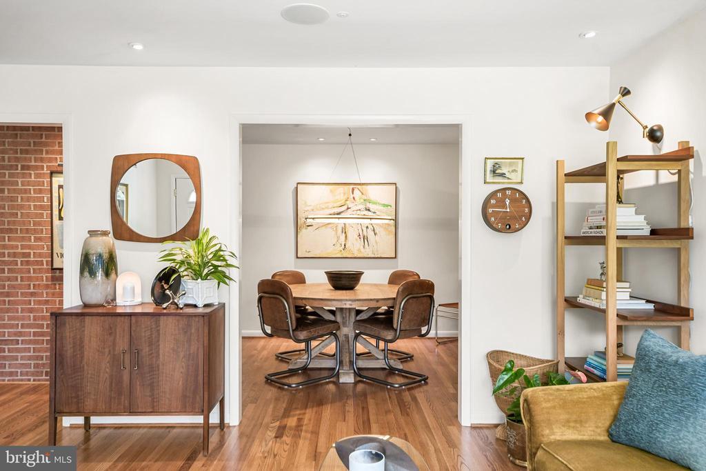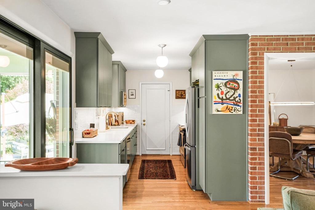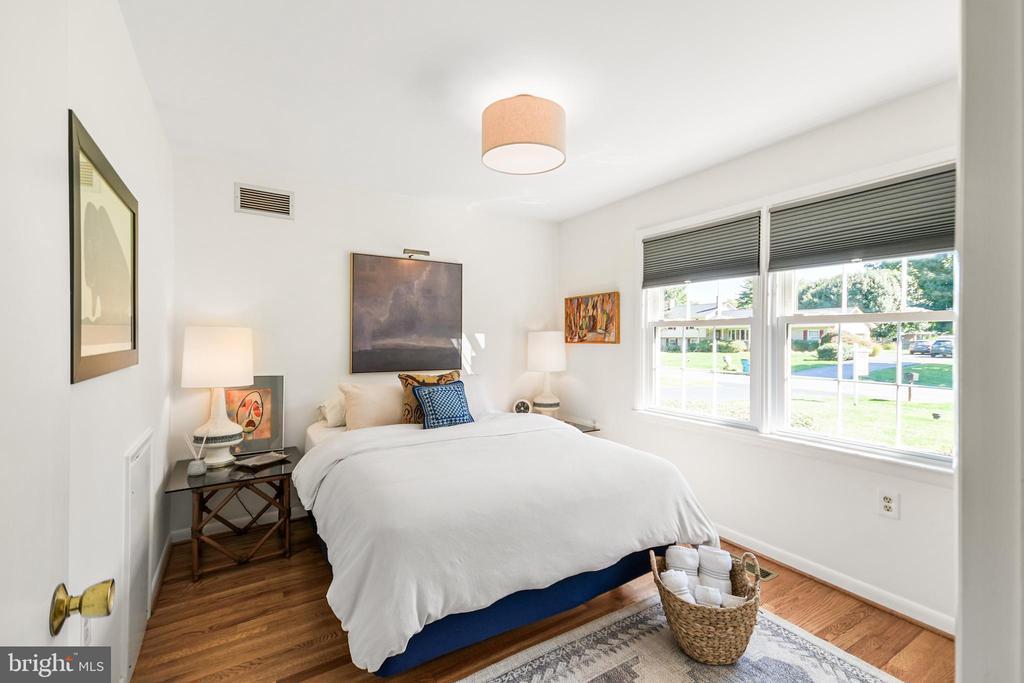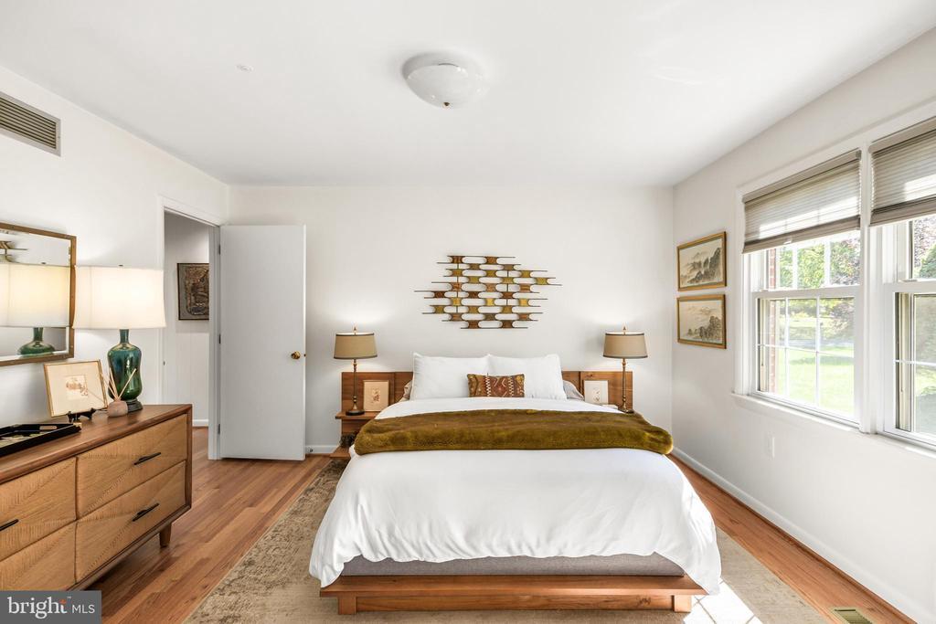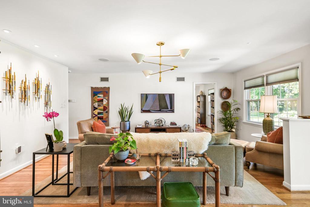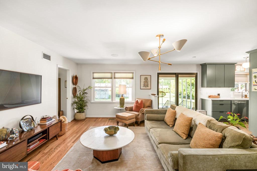 This beautifully updated rancher in highly desirable Clover Hill blends mid-century charm with modern luxury and thoughtful upgrades throughout. Surrounded by city conveniences yet within county limits, the home sits on a serene lot with mature trees and plenty of outdoor space. The heart of the home is the kitchen, featuring wood cabinets, new appliances, a white tile backsplash, and white quartz countertops. Beautifully refinished hardwood floors run throughout the main level. An opened brick wall connects the dining and family rooms, creating an inviting open layout perfect for gatherings. Recessed lighting installed on the main level enhances the bright, airy feel. The main-level primary suite offers a spacious walk-in closet and luxurious en-suite, while three additional bedrooms plus a versatile fourth room, ideal for an office, provide plenty of space for family or guests. A full remodel of the hall bathroom in 2024 includes handmade tile in the shower, custom stone floors, and high-end finishes. Step outside to a concrete patio that extends the screened porch with vaulted ceilings — a perfect space for relaxing or entertaining. The backyard is fully fenced, with a new Pella all-wood sliding door with shades providing seamless indoor-outdoor flow. The home is wired throughout for a whole-house audio system, and also includes a home security system (2024) and a new hot water heater (2024). The lower level features a kitchenette with a new ceramic sink and faucet, additional hang space, two storage rooms, and a potential fifth bedroom. Additional highlights include a brand-new 50-year warranty roof with oversized gutters and leaf guards, refinished exposed brick, and refinished hardwoods throughout. Clover Hill offers community amenities including a pool, baseball and basketball courts, walking trails, clubhouse, and pavilion — all just minutes from downtown. With designer touches throughout, mid-century style, and carefully executed updates, this home is turnkey and truly one-of-a-kind.