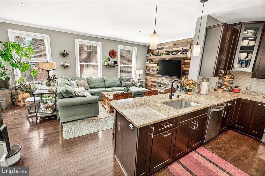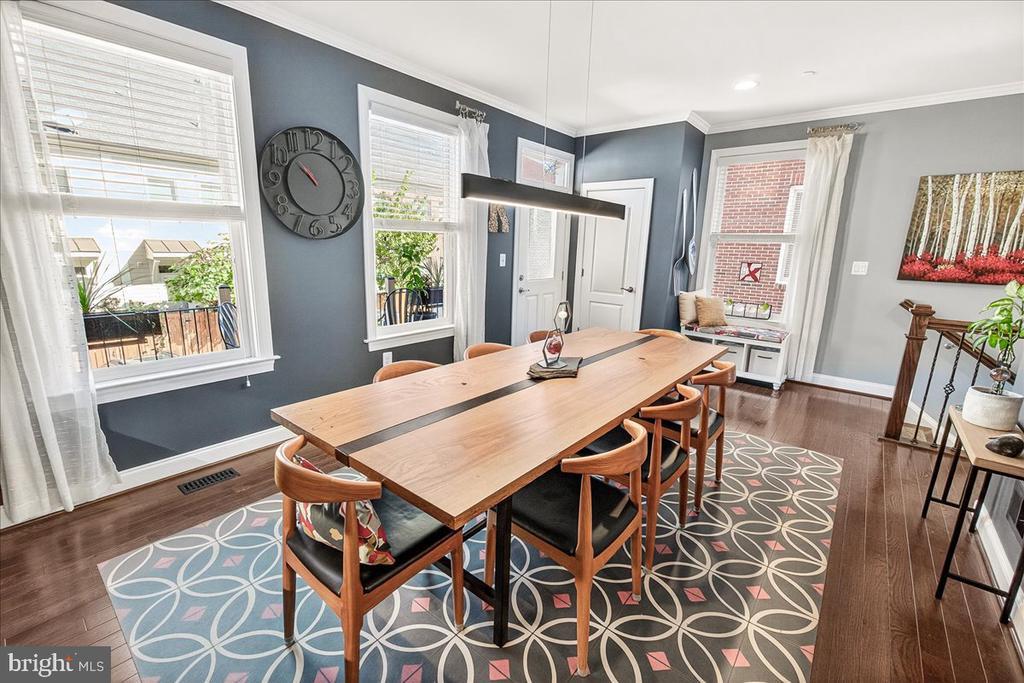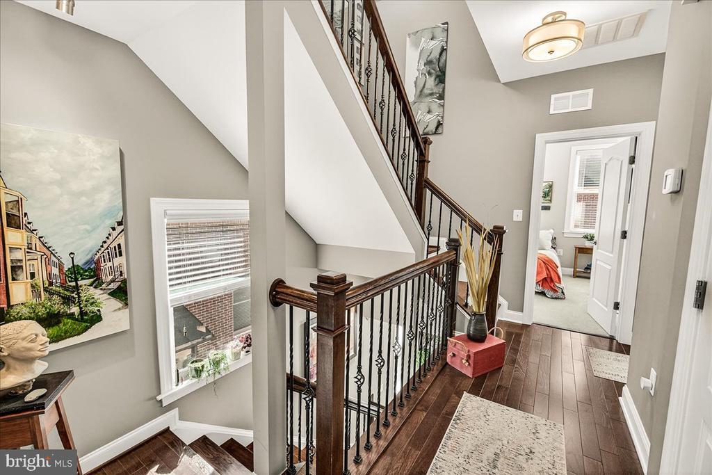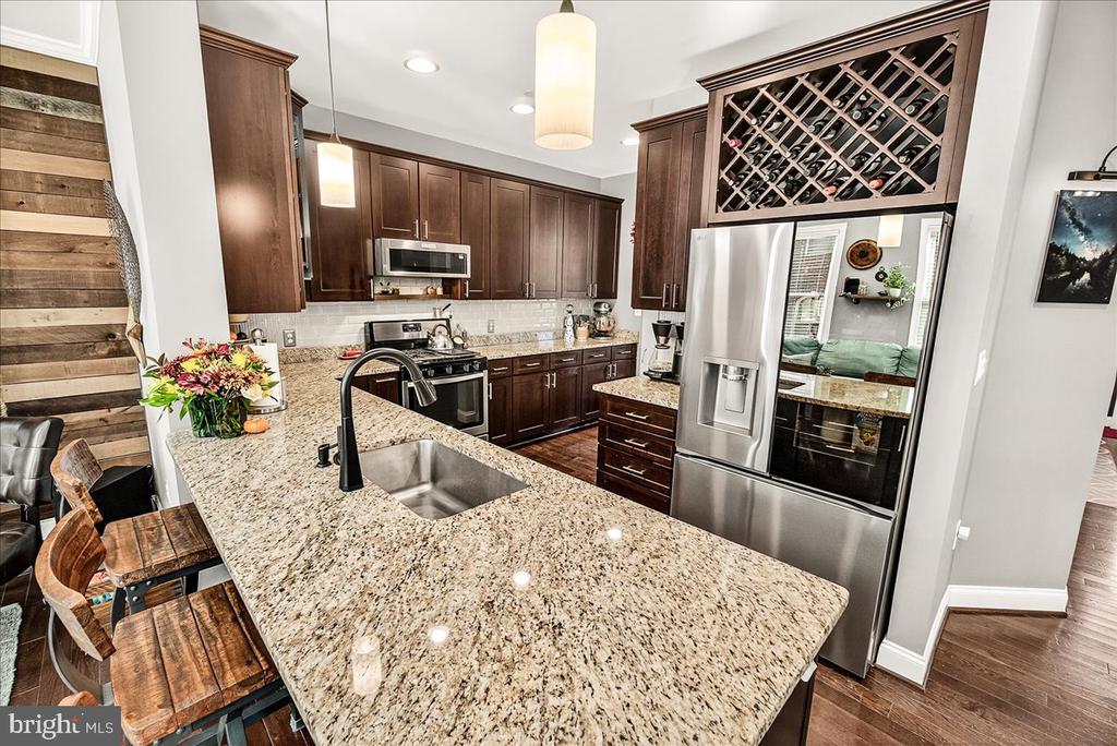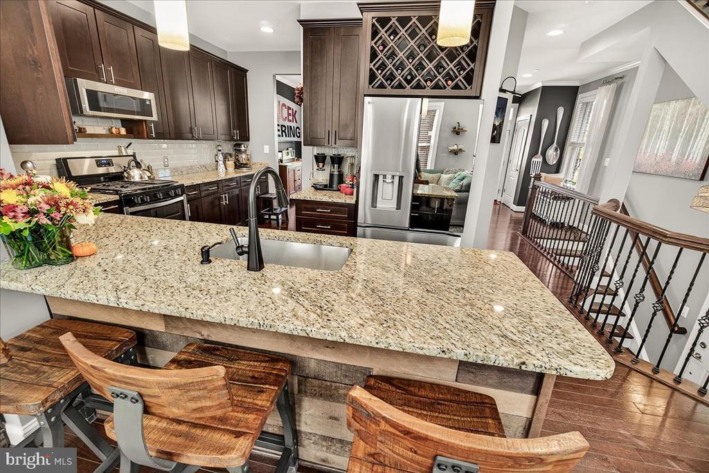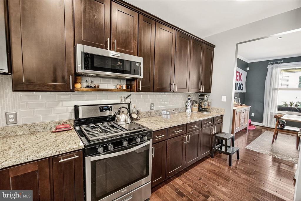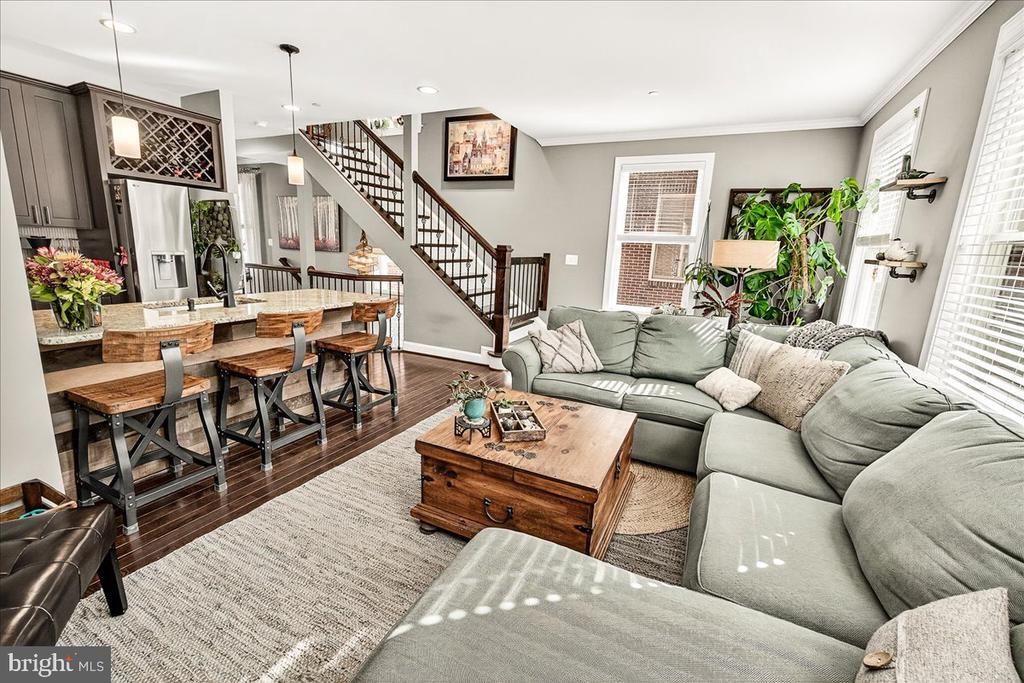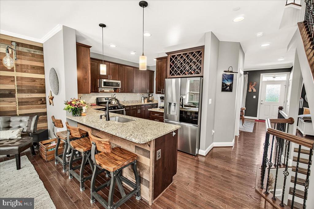 Imagine waking up every day in a sunlit, modern Federal-style townhome just moments from the charm and culture of Downtown Frederick. At 18 Maxwell Square, that dream becomes reality. This 4-level, all-brick end-unit was thoughtfully designed for luxury and comfort. With 4 bedrooms, 5 bathrooms, and a spacious 2,400 sq ft layout, there’s room for every chapter of your life. Built in 2015 and occupied by the original owners, this home is filled with upscale touches and thoughtful updates. From the moment you enter through the side porch, you’re greeted with warmth and sophistication —from upgraded luxury plank and hardwood floors, to staircases, which are enhanced with elegant iron stair balusters, to 9’ ceilings, with natural light streaming through expansive windows, no detail was overlooked. The gourmet kitchen features granite counters, custom backsplash, a thoughtfully placed wine rack, updated appliances, and stylish lighting. Open-concept dining and living areas flow beautifully to a balcony ideal for hosting or relaxing. Upstairs, the primary suite offers a serene retreat with walk-in closet and a spa-like bath with premium finishes. Two additional larger bedrooms, a convenient laundry area (with washer/dryer under 5 years old), and a upper-level loft doubles as a fourth bedroom, guest suite, or flex space. Plus, with a smart dual-zone HVAC, modern updated lighting throughout, crown molding, and a full attached 2-car garage, every detail has been considered. In Maxwell Square, enjoy the peace of a private community with mature landscaping, water/sewer/lawn care included, and plenty of visitor parking — a rare luxury in this central location. Bonus: a Ring doorbell, whole-house water softener/filter, and home warranty offer added convenience and security. Walk to everything — steps to Market Street, this home is in the heart of downtown Frederick with endless shops, fine dining, breweries, entertainment and parks — experience why Frederick continues to shine as one of Maryland’s most sought-after destinations. Your next chapter starts here — come see it for yourself.