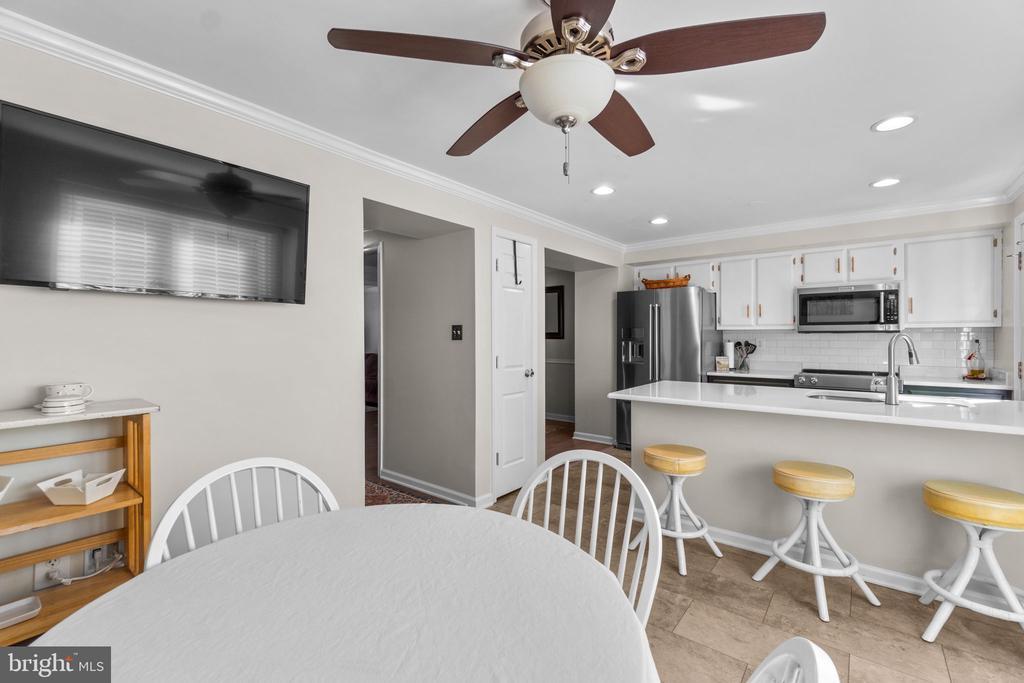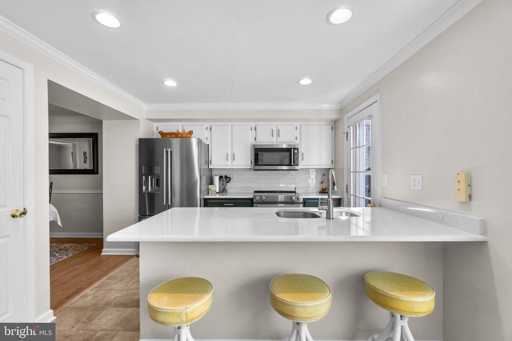 Beautifully maintained brick townhome offering three finished levels and numerous recent updates. The main level features a spacious living room, dining area, and updated kitchen with quartz countertops, stainless steel appliances, subway tile backsplash, and ample cabinet space. Upstairs, the primary suite includes French doors, a walk-in closet, and en-suite bath. Additional bedrooms provide versatility for guests, home office, or hobbies. Bathrooms have been updated with modern fixtures and finishes. The finished lower level offers flexible space for recreation, office, or exercise and walks out to a private fenced backyard. Outdoor spaces include a large upper deck, covered patio, and low-maintenance landscaping with stone accents. Recent updates include: new windows (2024), luxury vinyl plank on main level and kitchen, refinished hardwoods on upper level, new roof and skylight (approx. 2022). Community amenities include paved walking path along the Monocacy River, swimming pool, playgrounds, and organized activities for all ages. Conveniently located near Wegmans, Walmart, shopping, dining, commuter routes, historic downtown Frederick, and state and national parks with scenic views of the Catoctin Mountain corridor.