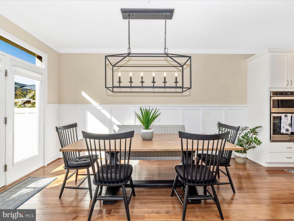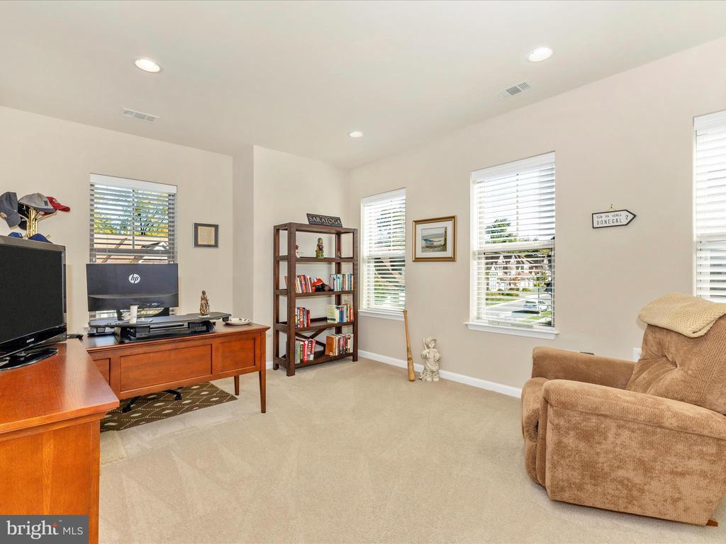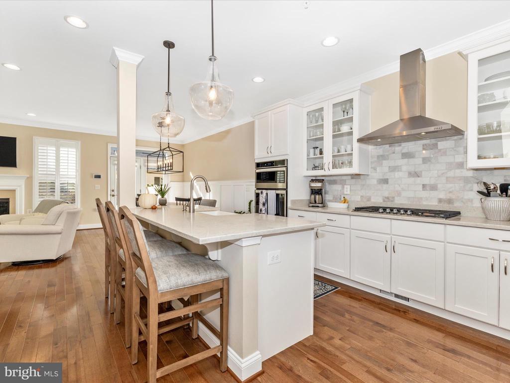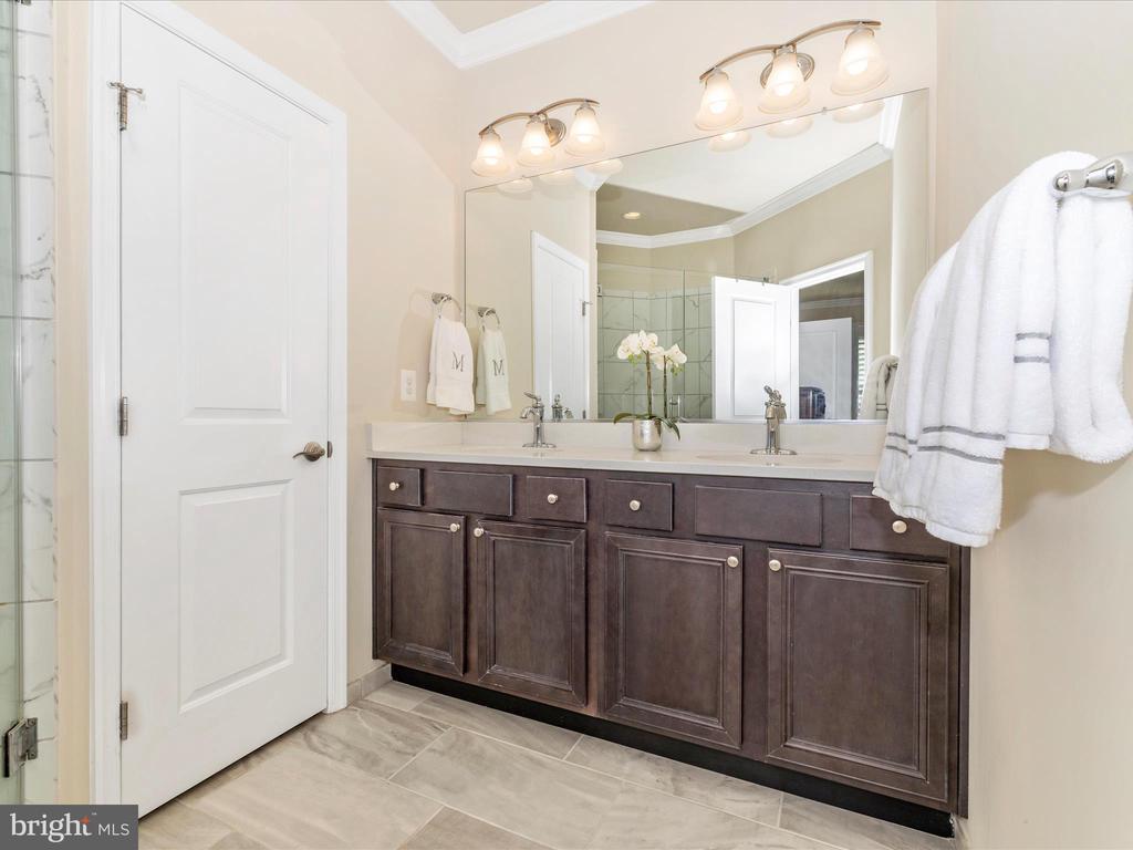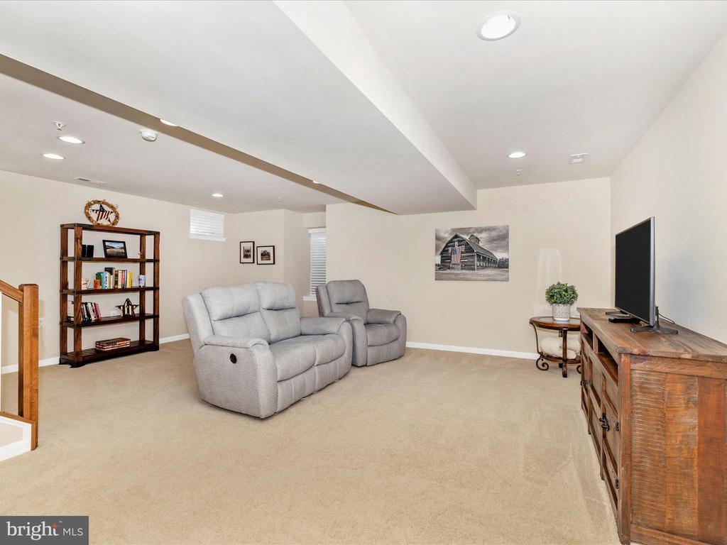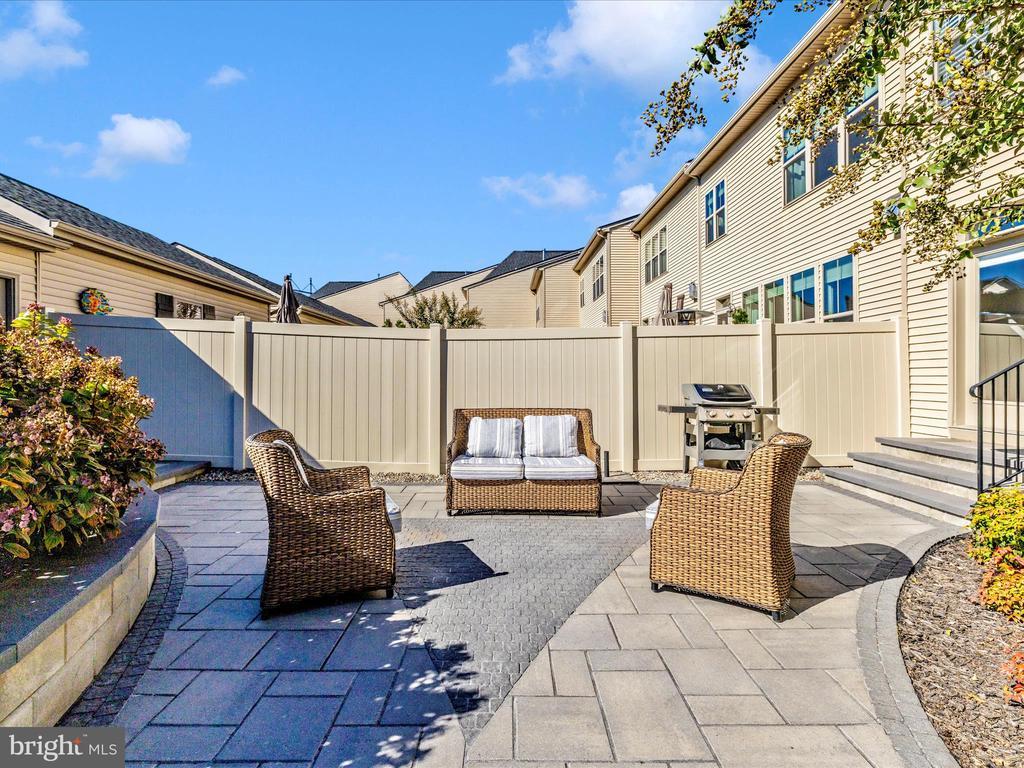 Upgraded and meticulously maintained Chambord model features main floor primary suite and 2-car detached garage! One of the largest townhome lots in the community! Open floor plan is perfect for day to day living and entertaining! Hickory hardwood flooring, upgraded crown and base moldings, and plantation shutters throughout the main level living area. Great room features beautiful gas fireplace with white mantle and beige marble surround. Dining room showcases upgraded farmhouse style light fixture and white, raised panel accent wall. Gourmet kitchen upgrades include: white painted cabinets with crown molding, quartz countertops, tiled backsplash, stainless steel vent hood over cooktop, ultra quiet KitchenAid dishwasher, counter depth refrigerator, white ceramic, farmhouse sink and custom pendant lights over island bar. Main living area opens to fully fenced rear yard with exceptional patio and professionally landscaped gardens. Main level primary suite includes walk-in closet and luxury bathroom with upgraded tile and frameless glass shower. Pantry, powder room and separate laundry room also on main level. Hardwood staircase leads to upper level featuring enormous family room with hardwood flooring. Two additional bedrooms and full bathroom with dual vanity on upper level. Partially finished lower level includes rec room with egress window and two storage closets. Full bathroom rough-in is framed and drywalled. Storage room includes utility sink. Upgraded integrated dual zone HVAC and water softener. HOA fee entitles owner to access all community amenities and also includes front/side yard lawn care and landscaping.