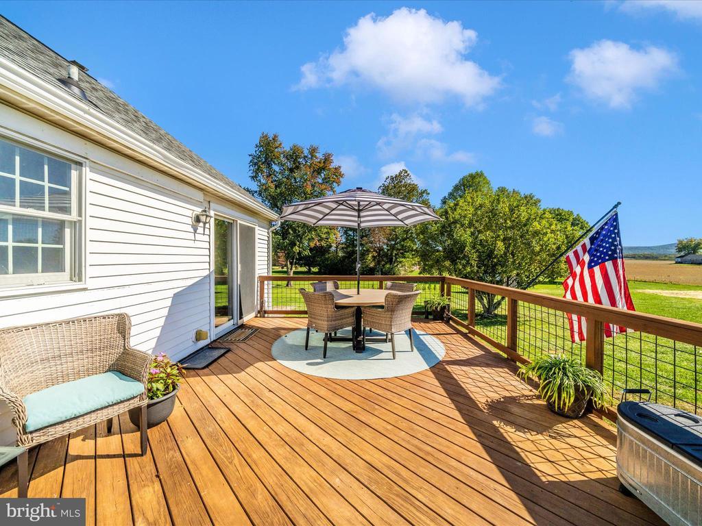 Welcome Home to Peace, Privacy & Pastoral Views! Tucked away on a cul-de-sac and set on 1.31 beautifully landscaped acres, this warm and inviting Cape Cod offers the perfect blend of charm, comfort, and country serenity. With sweeping views of surrounding farmland, a peach tree, blue berry bushes, and an asparagus patch, this home is your personal retreat from the everyday hustle and bustle. Step inside to discover fresh paint throughout most of the home, new flooring in many areas, and abundant natural light streaming through newer windows (installed just 5 years ago). A newer roof (approx. 3 years old) adds even more value and peace of mind. The main level is designed for easy living, featuring a sought-after first-floor owner’s suite and convenient main-level laundry. An additional bedroom and full bath on this level are ideal for guests, in-laws, or a home office. The cozy living room welcomes you with its pellet stove insert, elegant mantel, crown molding, and ceiling fan—creating the perfect spot to relax and unwind. The kitchen boasts a picture window overlooking the peaceful backyard and farmland, and opens to a light-filled dining area with sliding glass doors leading to the spacious deck. Whether you're enjoying morning coffee or hosting dinner under the stars, this space is made for memory-making. Upstairs, two generously sized bedrooms and a full bath offer flexibility for family, guests, or extra workspace. The finished lower level adds even more living space, featuring a large family room with a wood stove and walk-up access to the backyard with Amish shed with plenty of wood. A dedicated workshop, utility room, water treatment systems, and a radon remediation system ensure both function and peace of mind. Outside, take in the sights and sounds of nature from your private deck or explore your expansive backyard with room to garden, play, or simply breathe. Located just minutes from downtown Frederick and near the Montgomery County line, this home offers the perfect mix of rural tranquility and urban convenience. Enjoy peaceful living with easy access to shopping, dining, and commuter routes. Don’t miss the opportunity to own this slice of countryside paradise. Come fall in love—and love where you live.