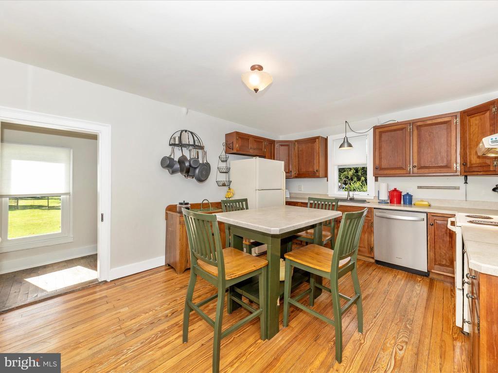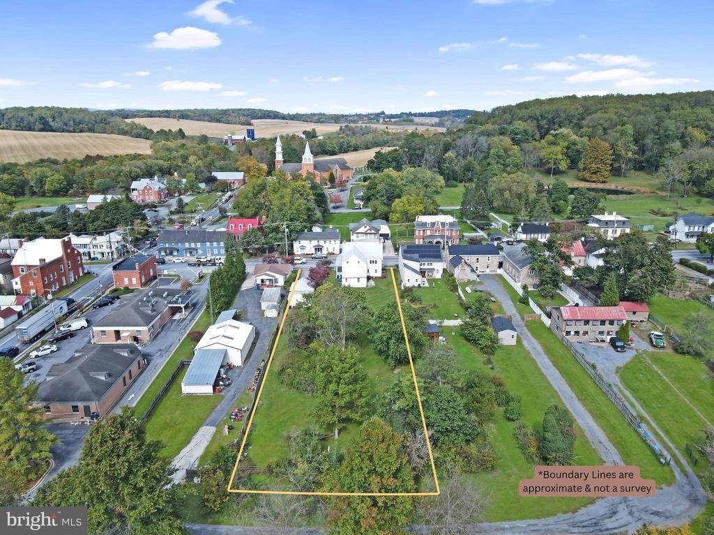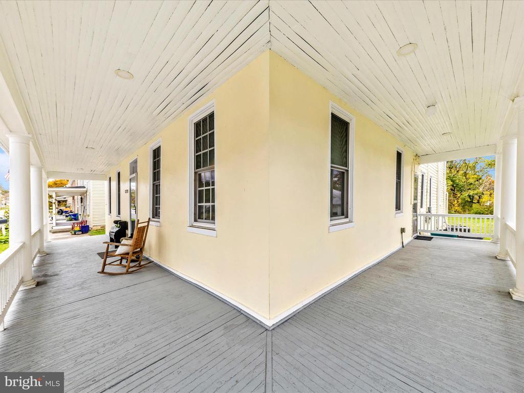 19th Century Colonial filled with Character, Charm & Space! Libertytown! Front Wrap Around Porch! Dual Zone Central Heat & Air! Welcoming Entry Foyer with Formal Living & Dining Room with exposed beams and brick wall - plus a bonus main level Family Room with Fireplace. Country Kitchen at the rear with a huge walk in pantry. Rear Staircase, too! Upper level features a primary bedroom, 3 additional bedrooms, a sitting room/office and the old sleeping porch! Full Size Attic. Inside and outside access to cellar/basement. Laundry room on main level. Full Bath on Upper, Half Bath on Main Level. Front part of house is brick (with stucco overlay) and back part is also brick (with wood siding overlay). Freshly painted metal roof, exterior and front porch. Covered Back porch entry. Ample driveway parking plus a 2 Car Detached garage with a bonus room/studio off the rear. Beautiful 2/3 Acre lot (in two parcels for added potential) which extends to rear alleyway which many of the homes along Main/Liberty Road use for rear access. If you are into older homes - this is a Must See! Current owners have replaced windows, upgraded the electric to 200 amp, replaced almost all plumbing and the HVAC is about 2 years young!