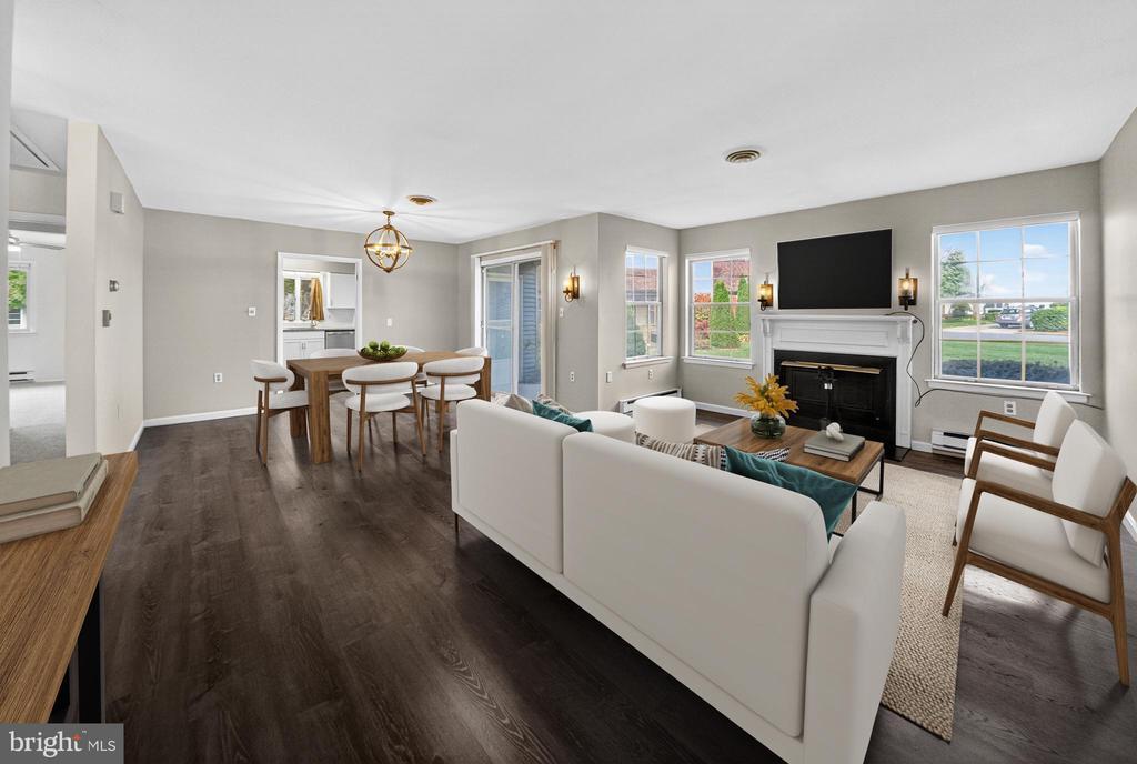 Welcome to this rarely available semi-detached 2-bedroom, 2-bath, plus bonus space home in the vibrant 55+ Crestwood Village community. The bright and airy main living areas feature updated flooring and abundant natural light from numerous windows and a sliding glass door overlooking lush green common space. The updated kitchen (2020) delights with white cabinetry, granite countertops, a classic tiled backsplash, and stainless steel appliances, offering open access to both the breakfast nook and the separate dining area—each with access to the side patio, ideal for outdoor dining or relaxing. Gather with guests or enjoy a cozy movie night by the wood-burning fireplace, complete with a timeless mantel that enhances the warm and inviting ambiance. Need extra space? The converted garage provides an additional living area with versatility to serve as a family room, home office, or guest retreat. Down the hall, the owner’s suite offers plush carpeting, a ceiling fan, generous closet space with mirror doors, and an en-suite bath with a spacious vanity and walk-in shower. A second bedroom, perfectly positioned across the hall, a hallway full bath with tub/shower combo, and a laundry room complete the interior of this charming home. Additional highlights include the convenience of off-street parking via the two-car driveway and a roof replacement completed in 2016. The monthly condo fee covers common area maintenance and provides access to a wealth of amenities and activities, including shuttle service, yoga and fitness classes, social clubs, a clubhouse, pool, gym, and library, along with outdoor amenities such as tennis, pickleball, and mini golf. Regularly organized group outings further support an active and engaging lifestyle for residents 55 and over. Ideally located close to a variety of shopping and dining options, including Francis Scott Key Mall and the nearby Westview Promenade, this home offers the perfect blend of comfort, community, and convenience.