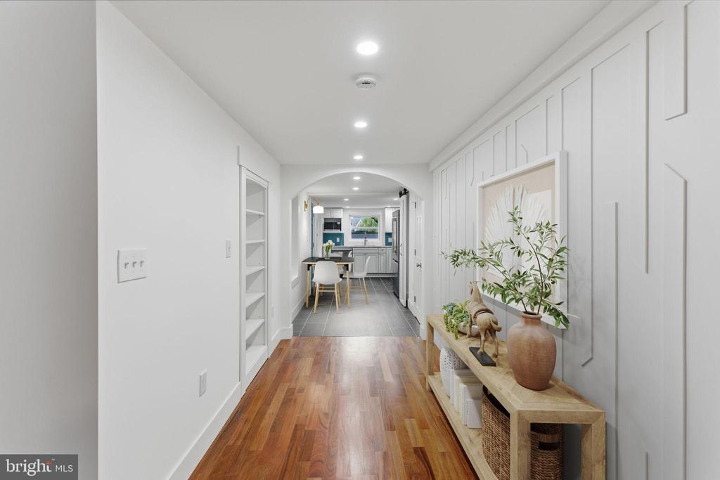 Nestled in the vibrant heart of Downtown Frederick, this exquisitely reimagined end-of-row townhouse, originally built in 1900, has undergone a complete custom renovation in 2025 to seamlessly blend historic charm with modern luxury. Behind its elegant Federal-style brick faade, every inch of the home has been thoughtfully redesigned with an updated floorplan and all-new systems, including plumbing, electrical service, insulation, and an efficient mini-split heat pump system. A whole-house water filtration system ensures clean, high-quality water throughout. Step inside to discover real Brazilian cherry hardwood floors that flow through the open-concept living area, complemented by custom-made Douglas Fir wood doors and front windows—true craftsmanship rarely seen today. The gourmet eat-in kitchen is a showpiece, featuring an all-new suite of smart appliances, sleek custom cabinetry, and premium finishes designed for both beauty and function. A hidden laundry area with an all-in-one washer/dryer unit and on-demand hot water heater maximizes efficiency while maintaining a clean, streamlined aesthetic. Under-stair storage adds clever practicality to the space. Upstairs, the bright and spacious bedrooms includes a walk-in closet, while the updated bathrooms feature contemporary tilework and modern fixtures. Outside, enjoy your own secluded backyard patio, ideal for relaxing or entertaining in privacy. Convenient off-street parking is available directly behind the property (neighbor contact available), offering rare ease in Downtown Frederick. Perfectly situated within walking distance of the city’s award-winning restaurants, boutique shops, and cultural attractions, this home combines the best of urban living with timeless design and modern comfort. With every system and surface brand new, this property is not just move-in ready—it’s future-ready. Experience the ultimate Downtown Frederick lifestyle in this completely renovated historic gem, where every detail has been carefully curated for quality, comfort, and style.