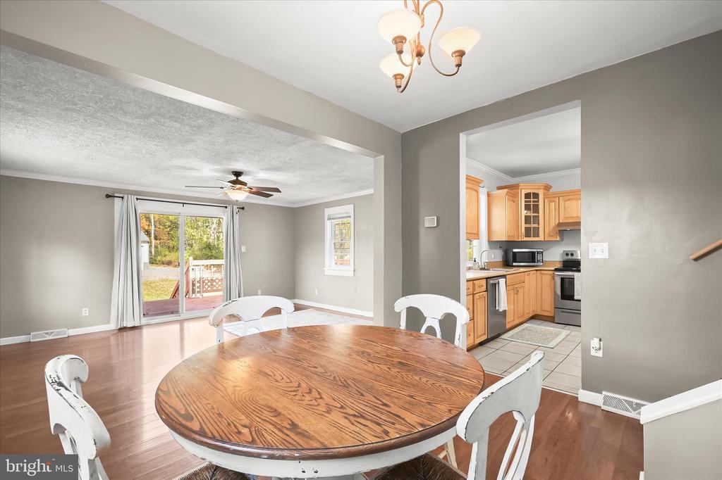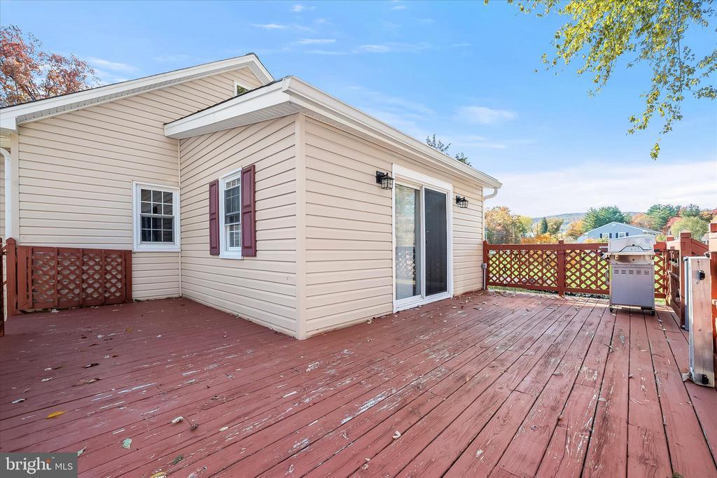 Nestled in the charming community of Mountaindale, this delightful bungalow offers a perfect blend of comfort and nature. With 1,282 sq. ft. of living space, this three bedroom, one bathroom home is designed for those who appreciate both tranquility and convenience of Frederick. The detached garage is 24 X 32 with two oversized garage doors and concrete slab floor perfect for equipment or collectibles. The property backs to lush trees, providing a serene backdrop and a sense of privacy, while the partly wooded lot invites you to explore the beauty of the outdoors right in your own backyard. Imagine waking up to breathtaking mountain views of the Frederick Waterside and Gambrill State Park and scenic vistas that inspire relaxation and adventure. As you arrive, an enclosed front porch welcomes you and is a great spot to enjoy a morning cup of coffee. Step inside where a light neutral color theme creates an inviting atmosphere. Prepare your favorite meals in the updated kitchen that boasts stainless steel appliances, granite countertops, cabinetry with lighting underneath, a pantry, and convenient access to the side porch. Rich hardwood floors extend throughout the home, with open concept dining and living rooms, with sliding glass doors in the living room leading out to the expansive wraparound deck. Located on the main level is a full bathroom with a tub shower and linen closet. Also located on the main level are two bedrooms, one of which includes a full stacked washer and dryer that could be moved into the basement level. Ascend upstairs where the top level is dedicated to the primary bedroom with a cathedral ceiling and large walk-in closet. Relax and entertain out back on the deck that overlooks the spacious back and side yards. The surrounding neighborhood is rich with community spirit and a welcoming atmosphere. Enjoy leisurely strolls through nearby parks, where you can unwind or engage in recreational activities. The local schools are known for their commitment to excellence, making this area a desirable place for lifelong learning. Conveniently located, this home offers easy access to essential public services and amenities, ensuring that everything you need is just a short drive away. The detached garage and circular driveway provide ample parking, making hosting gatherings a breeze. This property is not just a house, it's a lifestyle. Embrace the harmony of nature and community in Mountaindale, where every day feels like a retreat. Don't miss the opportunity to make this enchanting bungalow your new home! Additional recent updates include an all new BAT septic system installed in 2021.