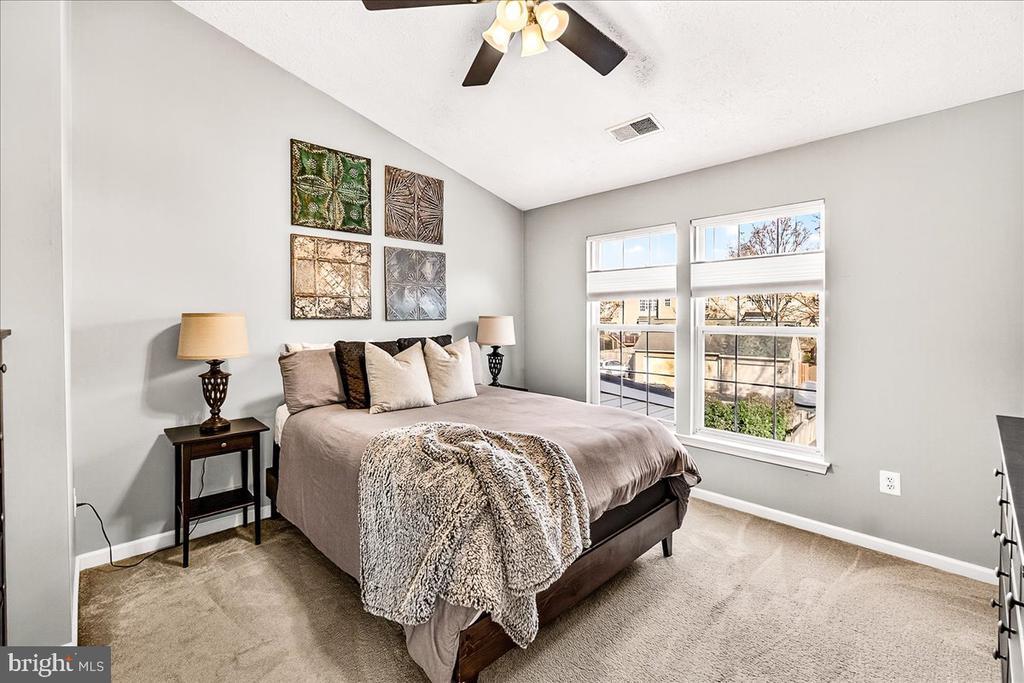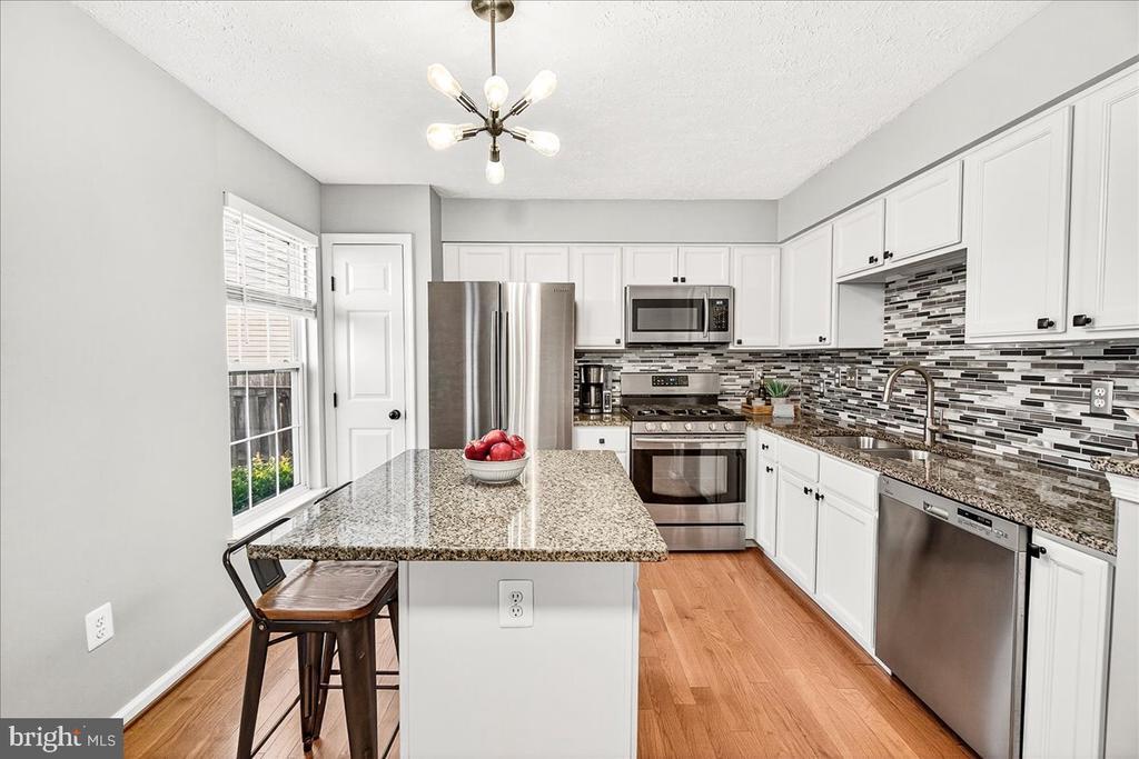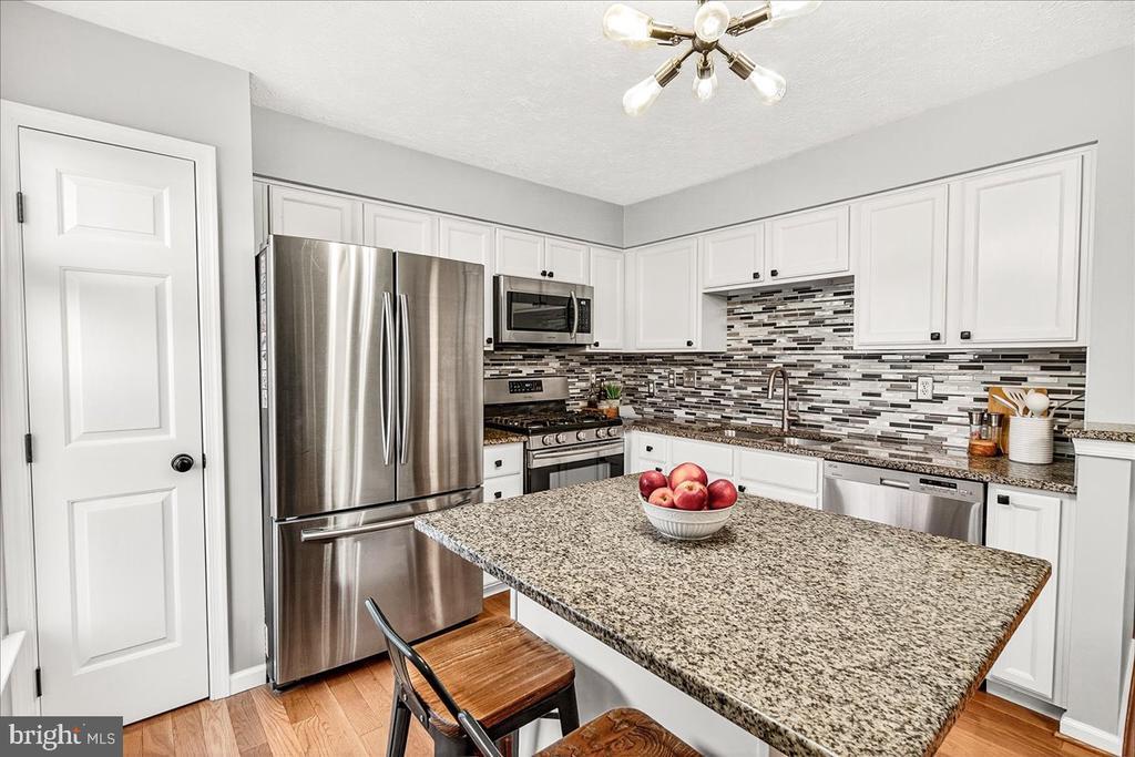 Welcome to this beautifully maintained end-unit brick-front townhome located in the highly desirable Dearbought community, just minutes from Downtown Frederick, major commuter routes, shopping, and dining. Offering three fully finished levels, this home combines modern updates with thoughtful design and abundant natural light throughout. The main level features gorgeous hardwood floors, a bright and spacious living room, a convenient powder room, and a stylish eat-in kitchen equipped with stainless steel appliances, granite countertops, a center island, tile backsplash, pantry, and direct access to the deck and fenced yard—perfect for morning coffee or outdoor dining. Upstairs, the primary suite features vaulted ceilings, a spacious walk-in closet, and a private en-suite bath. Two additional generously sized bedrooms and a second full bathroom complete the upper level. The fully finished basement adds valuable living space, featuring a large recreation area, a third full bathroom, and plenty of storage options. Outdoor living is easy with the deck overlooking a spacious, fully fenced backyard, complete with a patio, large storage shed, and off-street parking for two vehicles in the rear. Recent updates include a new roof, new HVAC system, and new washer and dryer, giving you peace of mind for years to come. Experience the best of Dearbought living—community amenities, scenic walking trails, and proximity to Frederick’s vibrant downtown—all in one exceptional home!