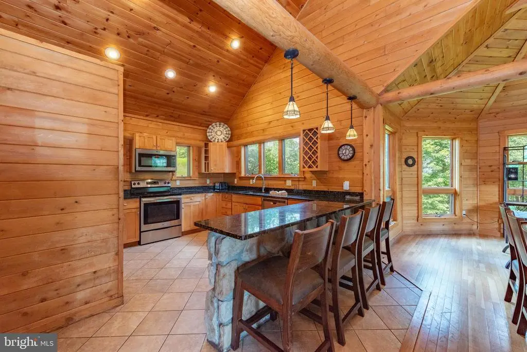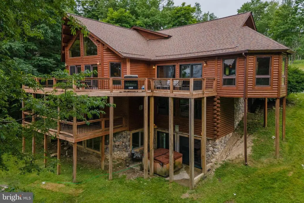 Luxury Log Home Perched atop Wisp Mountain – This 6 Bed, 5 Bath chalet offers 4227 sq ft, and features three stories of outdoor living space, vaulted ceilings, timber accents, and lots of glass to let in the mountain/lake views! Modern kitchen with stone tops and stainless appliances. Rugged stacked stone fireplace in the great room with a second fireplace on the lower level. Fully finished walkout basement with additional living and game room. So much room for activities… including taking a swim in your very own indoor pool! Two levels of sprawling outdoor decking tucked away on over 3 acres of private wooded land. An established vacation rental, “Splash Mountain” would make a perfect private getaway with excellent rental potential. Sold “turn-key”, fully furnished, just minutes from local establishments, Lodestone Golf Course, Wisp Resort, and Deep Creek Lake – this mountain retreat has easy access to everything the area’s got to offer. Call today for details!