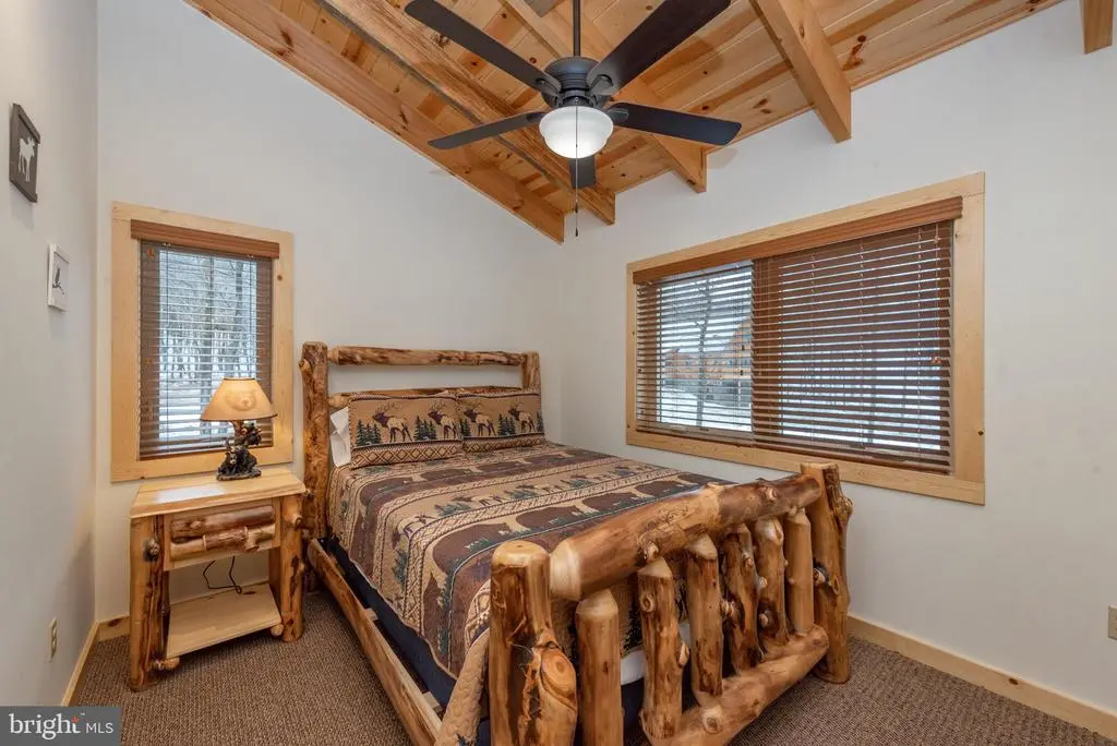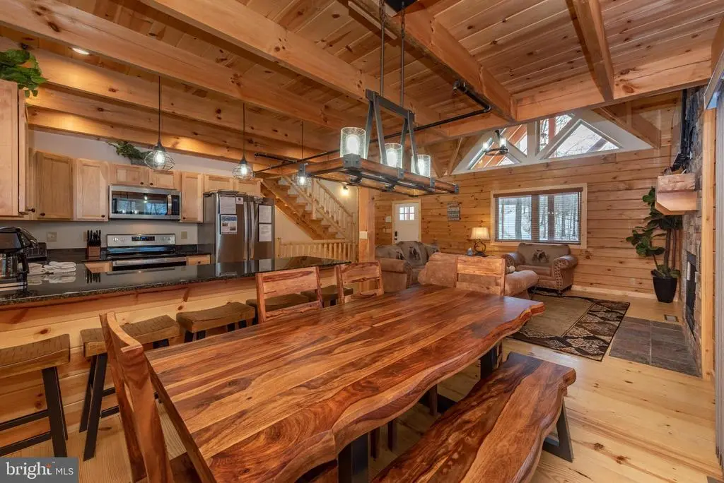 Looking for a place to slow down and relax? Finished in 2022, This 5-bedroom, 4.5-bath log home, has everything you need! Tucked inside the Lodestone Golf Course, "Blue Mountain Cabin" blends rustic charm with modern comfort. Inside, the open floorplan stitches the home together seamlessly. Hardwood floors, tongue and groove, and exposed timber accents run throughout. The great room features a two-story stone fireplace that opens up to a spacious loft overlooking it all. The kitchen and bathrooms are modern, simple, and easy to love. Downstairs, you’ll find a second living area with plenty of room to spread out, relax, or play a game of pool. Abundant outdoor living space featuring a covered wrap-around deck, hot tub patio, and outdoor fire pit. All nestled on nearly an acre of private wooded land. Minutes from Wisp Resort and Deep Creek Lake - This home puts priceless moments right in your backyard. Ready to make it yours? Call today for details!