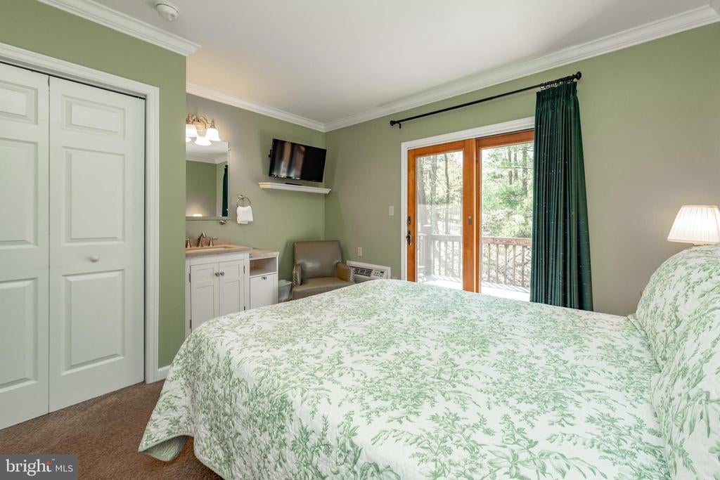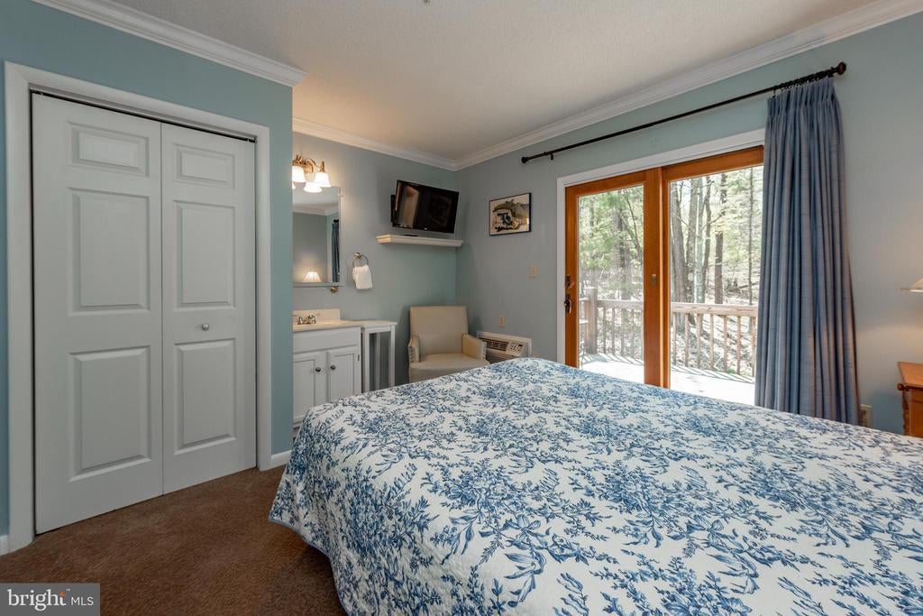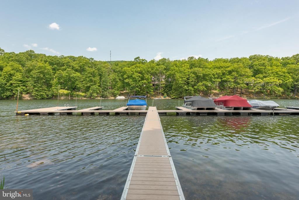 Iconic Lake Access Lodge at Carmel Cove – This one-of-a-kind property at Deep Creek Lake has 10 Primary Suites with an additional 2Bed/2Bath owner’s apartment on the lower level. Privately tucked away on 2 Acres of mature wooded land, you get the secluded feel of a personal mountain retreat with all the comforts of home! Featuring a massive great room with vaulted ceilings, timber accents, and an abundance of natural light. Fully renovated modern kitchen with granite tops, stainless appliances, and butcher block island bar. Breakfast nook on the way to the dining hall with its own stacked stone fireplace, coffee bar, and a wall of glass to let in the surrounding natural beauty. Covered porch off the main living area with private space on the wrap-around deck for each of the main level suites. The peaceful wooded setting for the bonfire pit. The convenient path down to your assigned Dock Slip is right next to the swimming platform in a no-wake cove. A well-established vacation rental, “Carmel Cove” has consistently averaged $100K+ annual rental income (between $100k-$140k over the last four years)! The sky is the limit for any future owner of this phenomenal lake access estate. Call today for details!