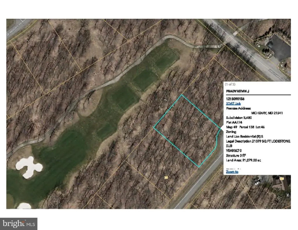 Golf course building lot. Beautiful wooded, gently sloping lot directly adjoining Hole 8 of Lodestone Golf Course atop WISP resort ski mountain situated above the shores of Deep Creek Lake. Small gated community with paved and private maintained roads. Lot positioning on cul-de-sac road assists with no through, and very minimal traffic otherwise. Very nice building lot for nearly any style of home. Public water, sewer, and electricity to lot. Attractive and inviting area and surrounding appearance around lot, and especially super nice scenery and atmosphere on rear of lot adjoining course. Membership and public play course. WISP ski slopes literally just a few minutes from lot, as well whitewater rafting circulating course, Deep Creek Lake, Youghiogheny River for rafting, kayaking, and trophy trout fishing, as well as Swallow Falls, Herrington Manor, and Deep Creek Lake State Parks only 10-15 minutes easy drive or bicycle ride away. "Great area for just living", but too, relaxing, dining, biking, golfing, skiing, boating, fishing, tons of public year-round events, and more than can list. Everything and more to like!