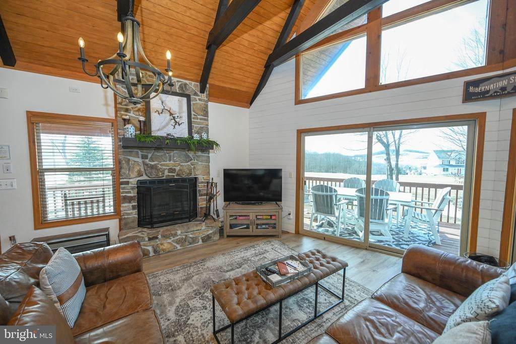 Nestled on over 3 serene acres, this stunning 4-bedroom upgraded cabin offers the perfect blend of rustic charm and modern luxury. Just minutes to Deep Creek Lake & Wisp Resort, the thoughtfully designed main home features spacious living areas with rich wood finishes, a spacious, eat in kitchen, and large windows framing breathtaking views of the surrounding landscape. The property boasts ample usable ground, ideal for outdoor activities or future enhancements. A detached guest house provides additional privacy and flexibility—perfect for visitors, a home office, and/or recreational space; it also houses a 5th bedroom and bath! Adding to its appeal, the property is an established and very successful vacation rental, "Sunset Peaks" with a solid income stream, making it a smart investment opportunity. Whether you're seeking a peaceful retreat, a family getaway, or a profitable venture, this exceptional cabin has it all. Don’t miss the chance to own your slice of Deep Creek paradise!