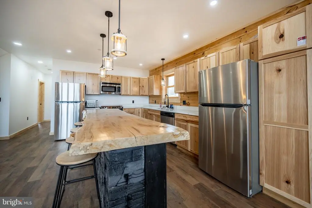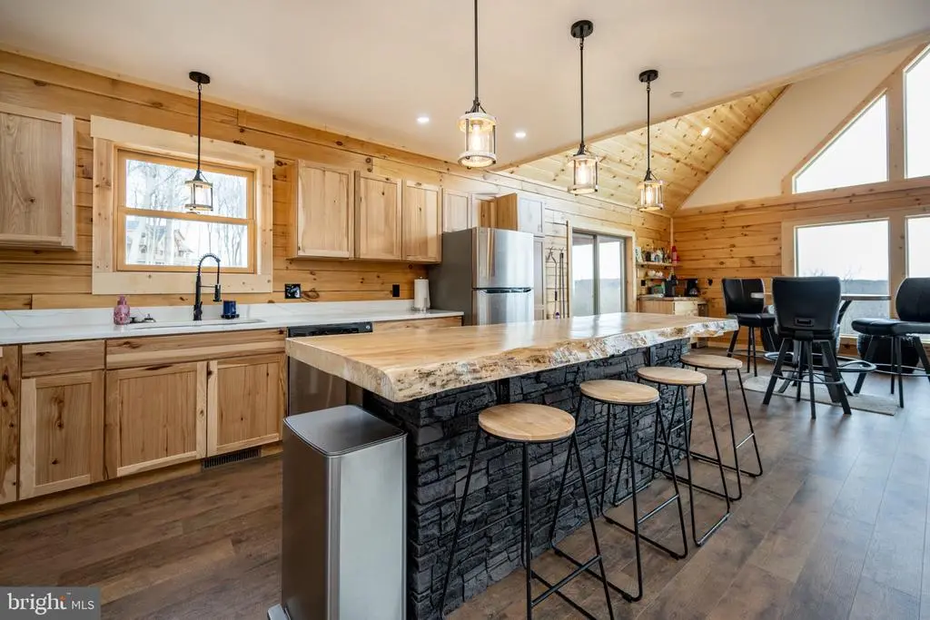 Luxury New Construction Log Home at Deep Creek Lake – Ski Slope Access, Expansive Mountain and Sunset Views, and Rustic Charm. Welcome to your dream mountain escape! This brand-new 7-bedroom, 6.5-bathroom log home is perfectly perched above Deep Creek Lake in the coveted ski-in/ski-out North Camp community atop the Wisp Resort area, offering direct ski slope access, a cul-de-sac location, and panoramic mountain views that stretch for miles. Spanning three fully finished levels, this rustic retreat blends luxury with authentic cabin charm. Inside, you'll find soaring wood ceilings, warm wood finishes, and custom rustic décor throughout. The heart of the home is the kitchen, outfitted with stainless steel appliances, two refrigerators, and a stunning live edge wood island, perfect for entertaining after a day on the slopes. Just off the dining area, a live edge coffee bar adds a cozy, lodge-style touch. The living room has an impressive stone fireplace. Step outside onto the covered deck to take in the fresh mountain air, or gather on the oversized concrete patio with family and friends to soak in the distant mountain views. The primary suite is a private sanctuary, featuring its own balcony with jaw-dropping sunset views over the mountains—truly a scene to remember. Also featuring 5 bedrooms with their own private bathrooms, a large lower level family rec room, a loft, oversized ceiling fans, modern rustic light fixtures, an oversized parking area, and tankless hot water. Whether you're hosting a crowd or enjoying a quiet mountain getaway, this home offers plenty of space, comfort, and style in one of Maryland’s most desirable year-round destinations. Rental projection up to $103K!! Don't miss your chance to own a piece of Deep Creek Lake paradise—schedule your private tour today!