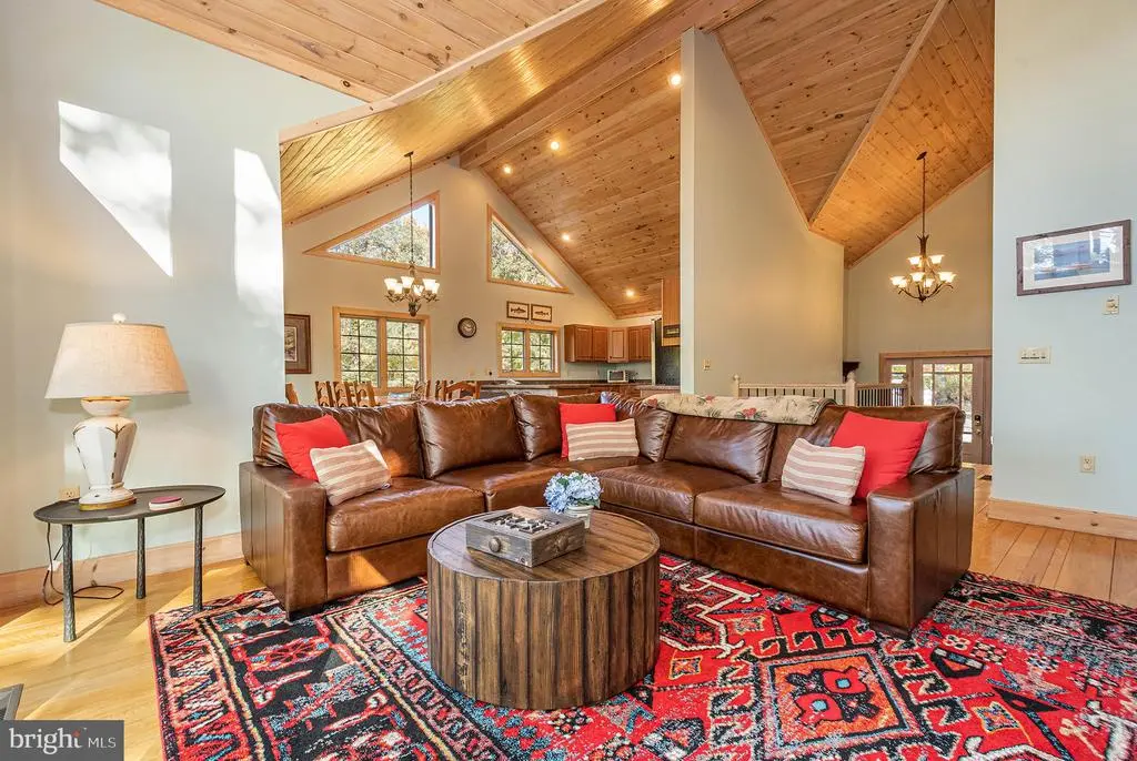 Beautiful log-sided home in the prestigious community of Deep Creek Highlands. This well-appointed mountaintop retreat offers 5 bedrooms (2 of which are en suites), an open floor plan, two gas fireplaces, hardwood floors, cathedral ceilings and a large kitchen. One mile to Wisp Ski Resort & Whitewater Course. Enjoy the mountain views with family and friends from the deck or hot tub. Community amenities include: outdoor pool, tennis, playground, walking trails, and class 3 lake access. Established rental "Glass Mountain Lodge".