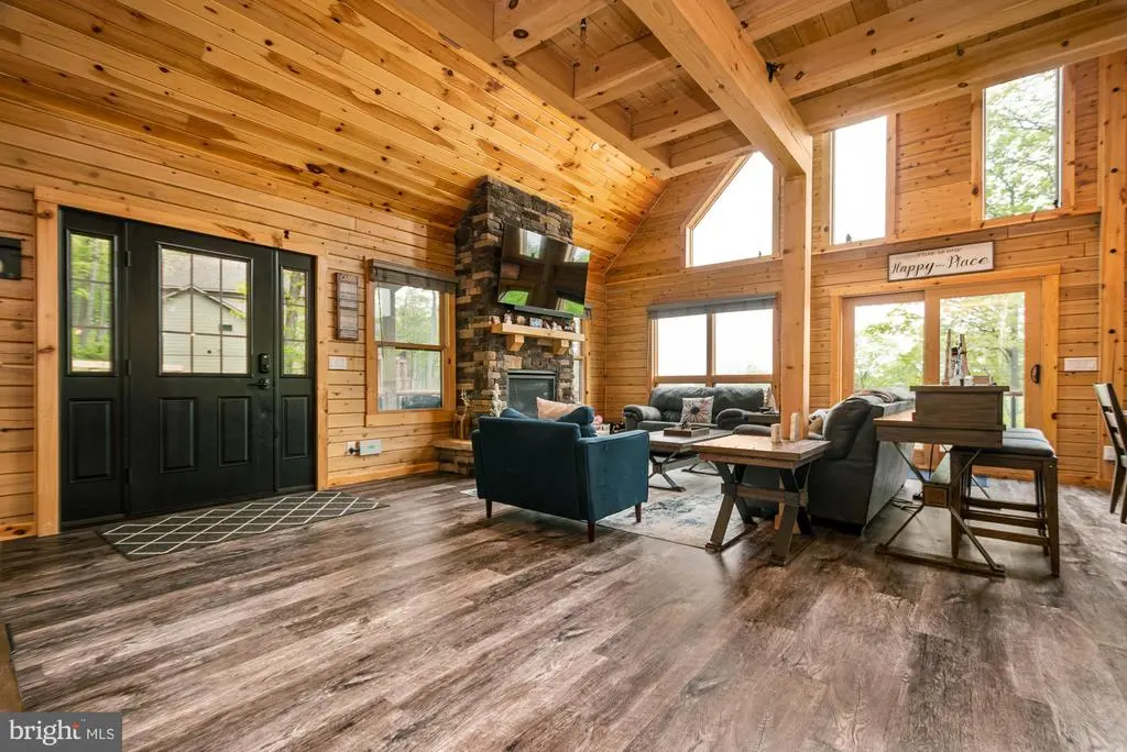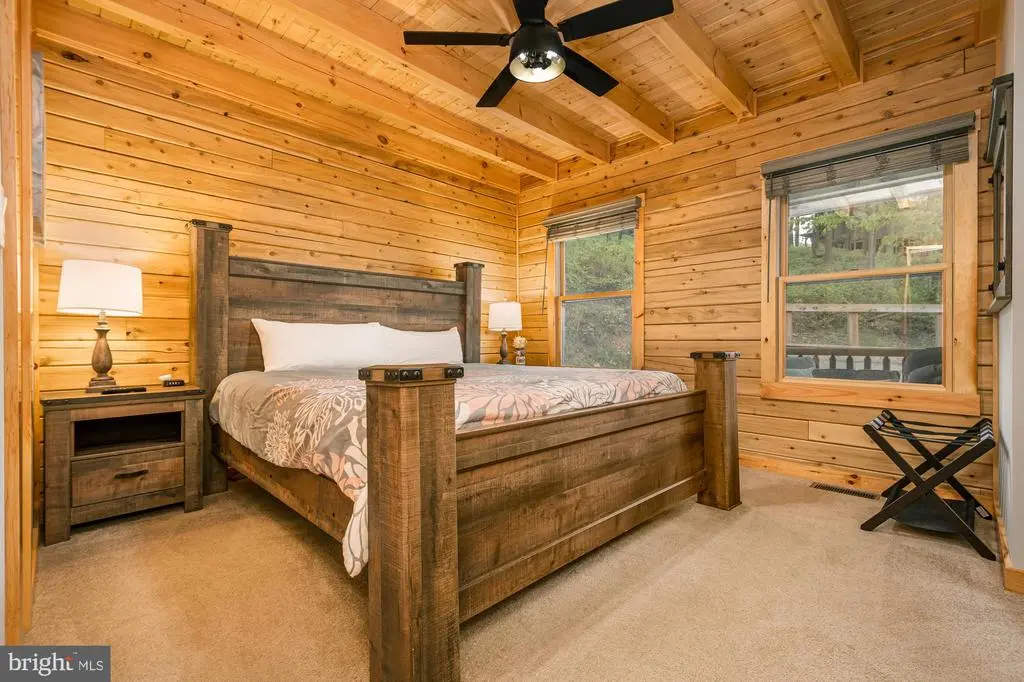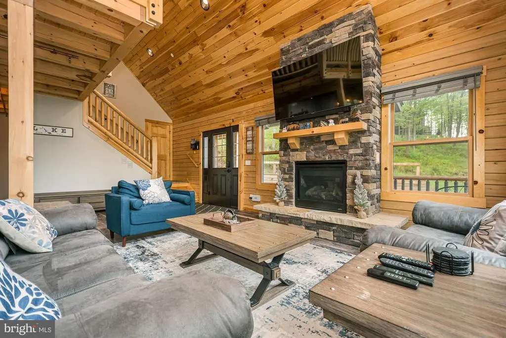 Nestled in the serene mountaintop community of North Camp, you’ll find this cozy log home with stunning mountain views. This home is warm and inviting from the moment you enter and provides a nice blend of rustic charm and modern comfort. Offering an open floorplan with five bedrooms, two stone fireplaces (one indoor and one outdoor), two gathering rooms, and a spacious loft area. The abundance of windows brings in the stunning views from almost every room. The outdoor space is ideal to enjoy family and friends with a large deck and a hot tub, providing plenty of space for entertaining. The location is just minutes to ski access and Deep Creek Lake. Established rental "Sunset Bluff". Call today to preview this gem!