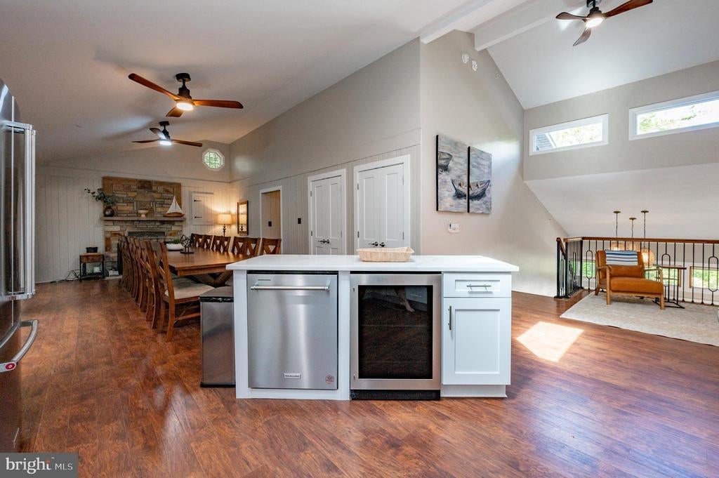 Fully Renovated Lake Front Lodge with Private Type-A Dock – This 8 Bedroom, 6.5 Bath Lake Front property has been completely re-imagined with 2700 sq ft of newly added living space, indoor pool, and home theatre! Fully finished lower level with a primary suite and living room equipped with an island bar and stone fireplace. Bright and shiny new kitchen with stainless appliances, wine chiller, 2ndrefrigerator, and quartz tops. Gorgeous modern bathrooms, with updated vanities, tiled showers, and multiple standing tubs. Sold “turn-key” fully furnished with updated fixtures and furniture throughout! “Great Hall” style dining room with its a stone fireplace. Sprawling front deck overlooking Deep Creek Lake. Decked-out covered back patio with abundant outdoor seating. Lakeside fire-pit with perfect level lake access. Right across the street from Deep Creek Lake State Park, and minutes from local restaurants and Wisp Resort. Offering the perfect blend of comfort, style, and convenience, “Blue Anchor” makes an excellent lake home, or a perfect vacation rental too. Call today to set up your private showing!