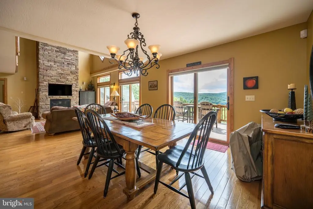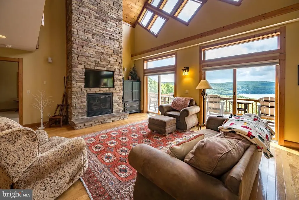 Rustic Lakeview Retreat with Expansive Mountain & Lake Views Discover your perfect Deep Creek Lake escape with this stunning 4-bedroom, 4.5-bathroom vacation home, offering breathtaking panoramic views of the lake and surrounding mountains. Designed for comfort and style, this rustic yet elegant retreat boasts three fully finished levels, vaulted ceilings, and an abundance of natural light pouring in through large windows that frame the spectacular scenery. Inside, you'll find gorgeous wood flooring throughout, a spacious kitchen with granite countertops, stainless steel appliances, and two impressive stone fireplaces that add warmth and charm to both the main living area and lower-level family room. A fifth sleeping area in the cozy loft provides additional space for guests. Three of the four bedrooms offer serene lake views, with two featuring luxurious private baths complete with large soaking tubs and ceramic tile accents. Whether you're enjoying morning coffee in the screened sun porch or unwinding in the hot tub overlooking the lake, this home is designed for relaxation. Step outside to enjoy the beautifully updated landscaping, a large composite deck perfect for entertaining, and a thoughtfully designed fire pit area with ample seating—ideal for gathering with family and friends under the stars. Lake access adds even more value, giving you the best of Deep Creek right at your fingertips. Located just a few miles from Wisp Resort, this home is the perfect year-round getaway—whether you’re hitting the slopes in winter or enjoying the water in summer. With a paved driveway, scenic setting, and timeless appeal, this is mountain lake living at its finest.