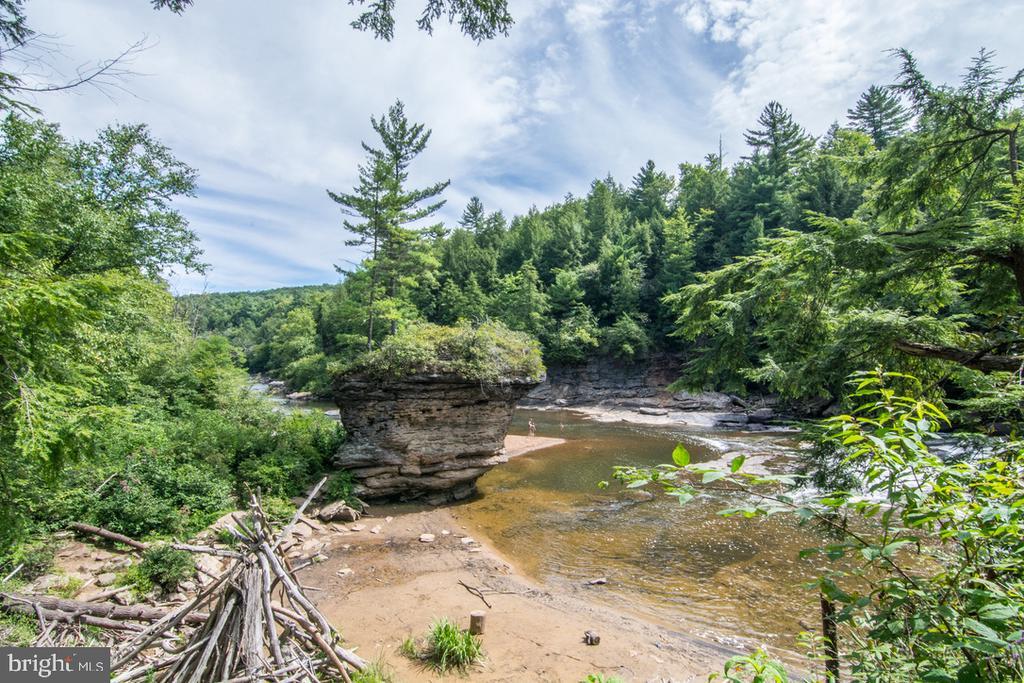 This private 3-bedroom, 2-bath cottage is tucked away on an oversized 1.24-acre lot at the end of a quiet street in the lake access neighborhood of Sky Valley. Inside the home offers a spacious open living area with a pellet stove for after skiing evenings. The kitchen is open to the living area and has ample cabinet space and room for a dining table. The primary bedroom features it's own private bath with separate shower and soaking tub, while two additional bedrooms share a second full bath. A den/office adds flexible living space. The home also includes a full unfinished lower level with a separate outside entrance-perfect for storage or future expansion. The home offers affordable lake living with 3,000 feet of shared shoreline that rivals the Deep Creek Lake State Park. Three swimming platforms, roped off swimming area, picnic pavilions, docks with a jet ski area located in a no wake cove, and a stocked fishing pond—all part of a private community that feels like being in an upscale summer camp! Dock slip is through the association-When homes sell the slip goes back to the association. Until you get your assigned slip you can launch your boat at the Sky Valley boat launch. It is the only private neighborhood boat launch on DCL. Also explore the neighborhood on your golf cart or ATV! For the golfers in the group, it is only minutes to Thousand Acre Lakeside Golf Course. Surrounded by nature and set in a friendly neighborhood, this cottage is the perfect retreat for relaxation, recreation, and making memories at the lake!