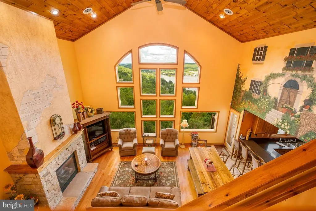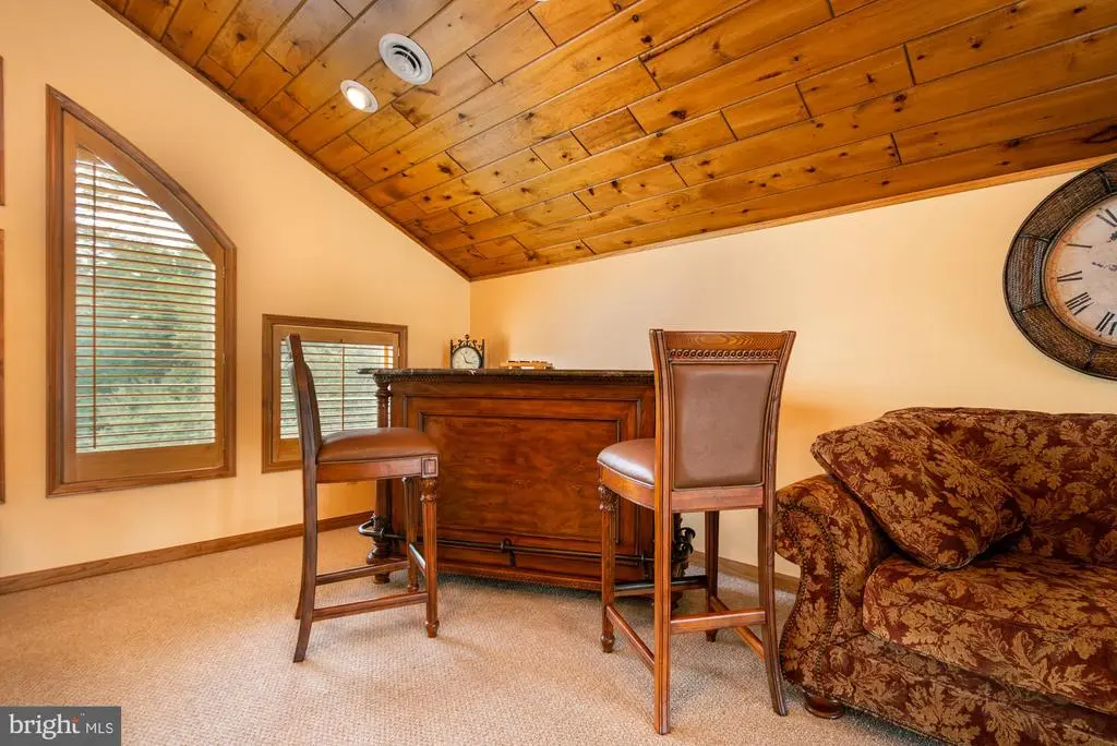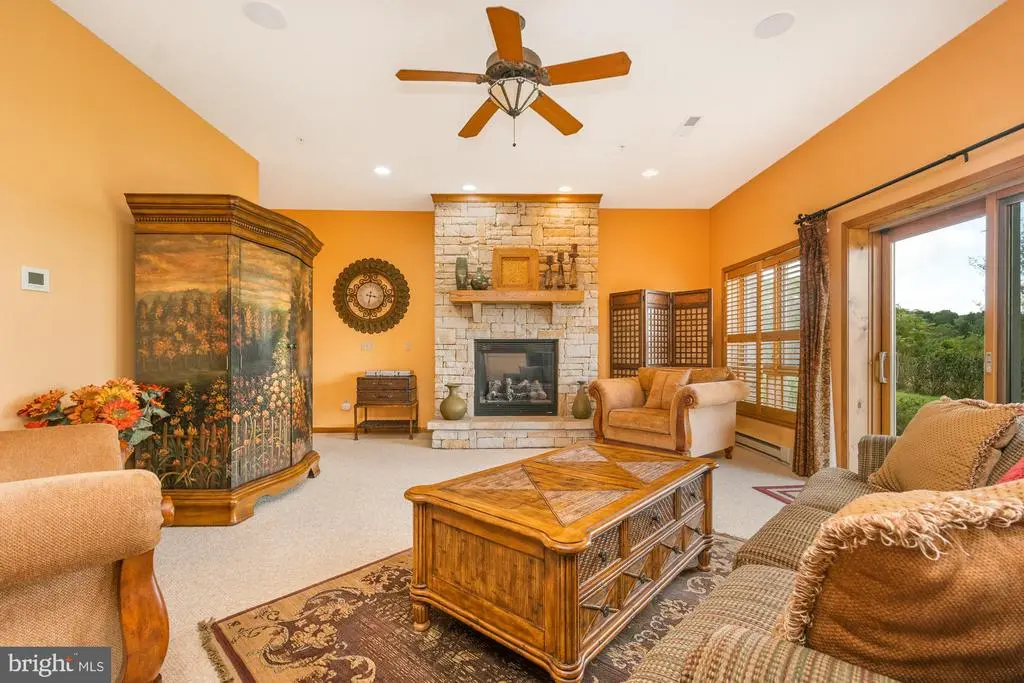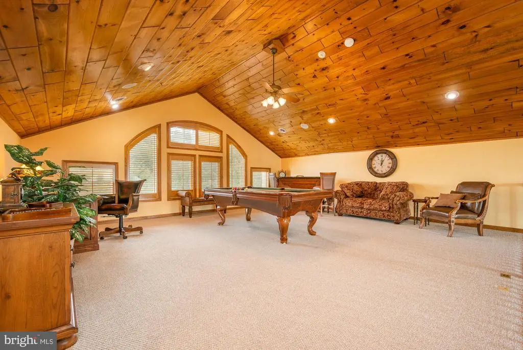 If you are interested in easy living while still enjoying a houseful of company, this could be the place for you. Five owners share in ownership of this villa. Each owner gets about 10 weeks per year via a rotation list established twice a year. Owners also have a large, locked closet within the garage to hold miscellaneous personal items, food, sports equipment, clothes, etc. so that they don’t have to haul too much stuff back and forth from their homes. Everything is included in the quarterly maintenance fee — cleaning, washing sheets/towels, maintenance inside and out. Everything is done for you. You just have to show up and enjoy this Tuscan-decorated abode, complete with every kitchen appliance one could ever want, as well as a movie room with 8 reclining leather chairs, a pool table, a hot tub, a portable air hockey table (not quite full size), two bikes, two fireplaces, two decks, and 4 bedrooms with en suite bathrooms so guests can have a bit of privacy. And if you are a skier, Wisp Ski Resort slopes can be accessed about a mile away. The view of the lake is stunning in all four seasons. Also, no rentals are allowed, so only the owners may use this property. You also have access to a community pool nearby, playground, tennis courts, walking trails, and a lake access area on Marsh Hill Road.