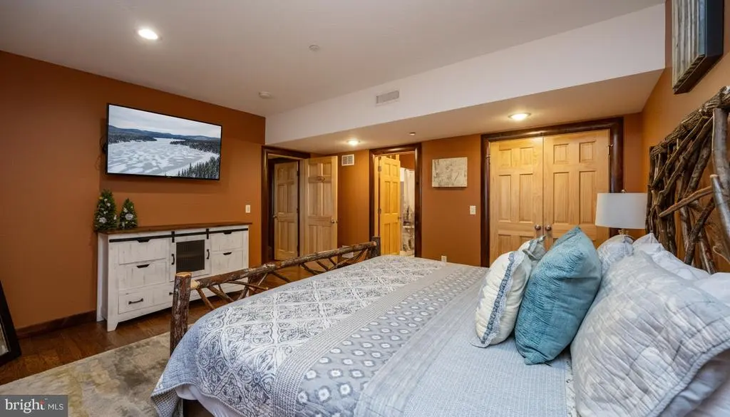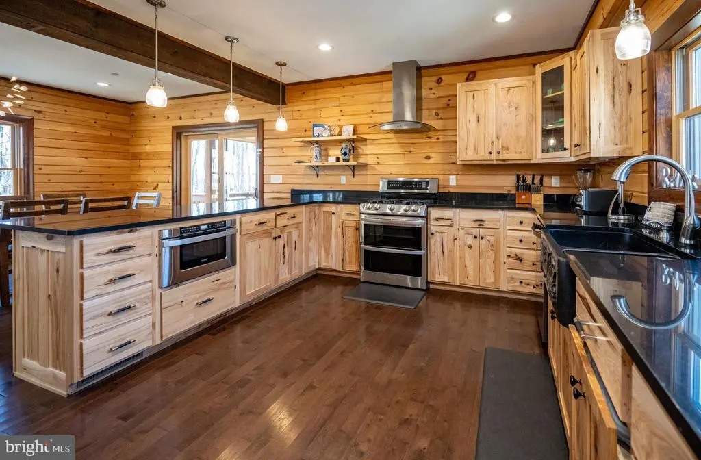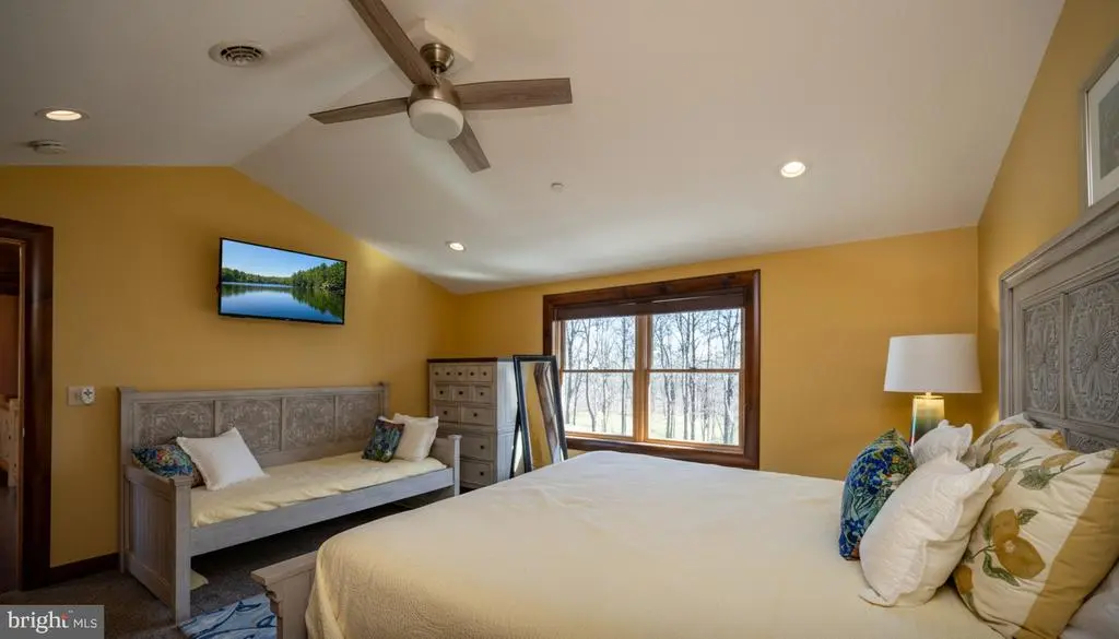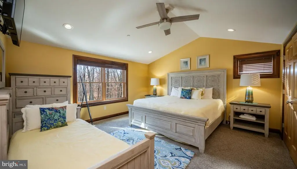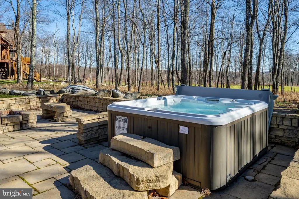 This striking 5 bed/7 bath log home sits in one of Wisp Mountain’s most sought-after locations, offering a warm four-season retreat just minutes from Deep Creek Lake, Lodestone Golf Course, Wisp Resort, and the area’s top dining and recreation. Seasonal lake views from the living room and deck enhance the setting and connect the home to its surroundings. The main level features a bright, open layout with a wall of windows, a floor-to-ceiling stone fireplace, and a well-equipped kitchen with granite, stainless appliances, gas range, farm sink, and a large island. Sliding doors extend the space onto an expansive deck with a covered outdoor fireplace, making indoor-outdoor entertaining effortless. A main-level primary suite with deck access and a spa-style shower anchors the first floor, while the upper loft with wet bar and two additional suites provide comfortable accommodations. The lower level adds a full family-fun zone with a pool table, arcade game, wood-burning fireplace, wet bar, another primary suite, and a bunk room. Outside, a large stone patio with built-in firepit seating and a private hot tub complete the package, offering multiple places to gather, unwind, and enjoy the mountain setting. A detached two-car garage with space above provides excellent storage for vehicles and gear. The property is also equipped with a whole-house Generac generator, ensuring dependable backup power in every season. Blending craftsmanship, comfort, and a prime location close to everything Deep Creek offers, this home stands out as an ideal full-time residence, vacation property, or rental investment.