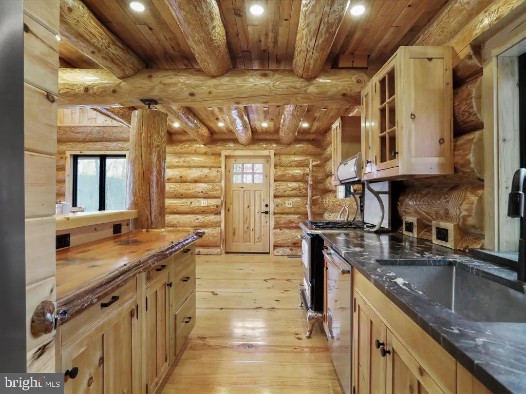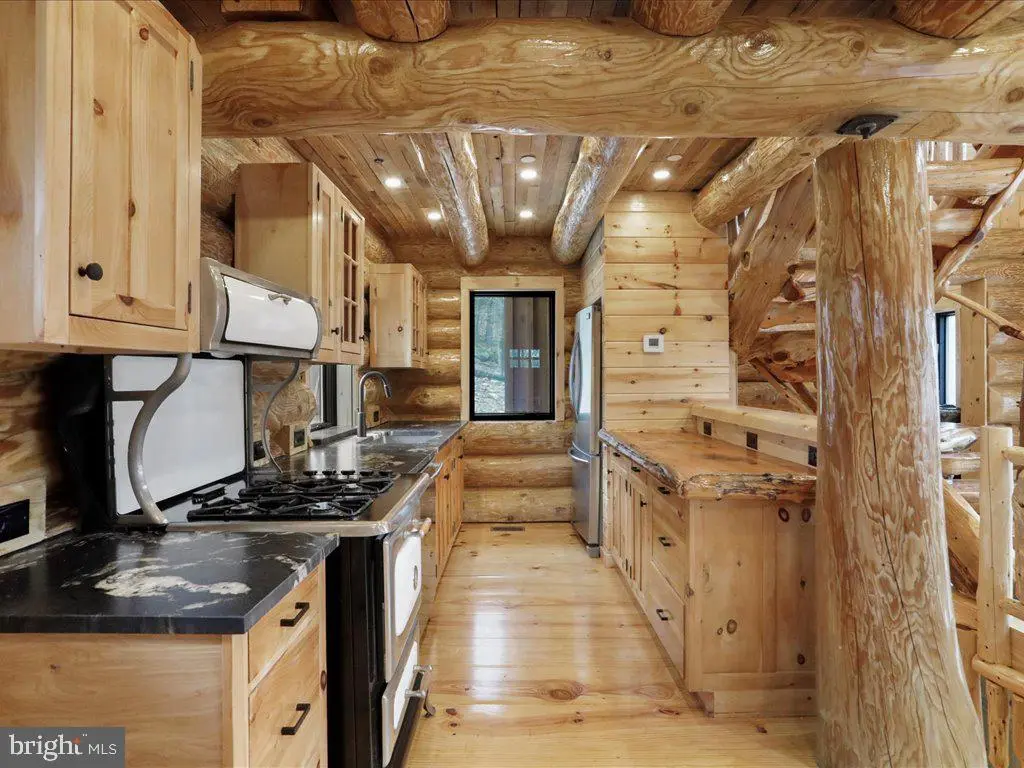 Lake access! Lake views! One of a kind Custom 4 bedroom Log home built with 18” logs, large antler chandelier, custom cedar spiral stairs, indoor and outdoor fireplaces, large deck and covered patio area. This is a one of a kind property and must be seen in person to appreciate! Wow, this striking four-bedroom residence stands out as one of the most distinctive homes on Deep Creek Lake. The main level features a gourmet kitchen with professional-grade stainless steel appliances and granite countertops, complemented by a spacious living room and a cozy family room centered around a wood-burning stove. Step outside onto the expansive 22' x 13' deck to enjoy panoramic lake views. Upstairs, the primary suite offers comfort and privacy with its own bathroom and serene views of the lake. The lower level includes three additional bedrooms, a full bath, and access to a 25' x 13' patio complete with a wood-burning fire pit — perfect for relaxing or entertaining outdoors. Every level of this exceptional home showcases beautiful views of Deep Creek Lake, blending rustic charm with modern comfort. In addition, the property offers lake access privileges, providing the full Deep Creek Lake experience.