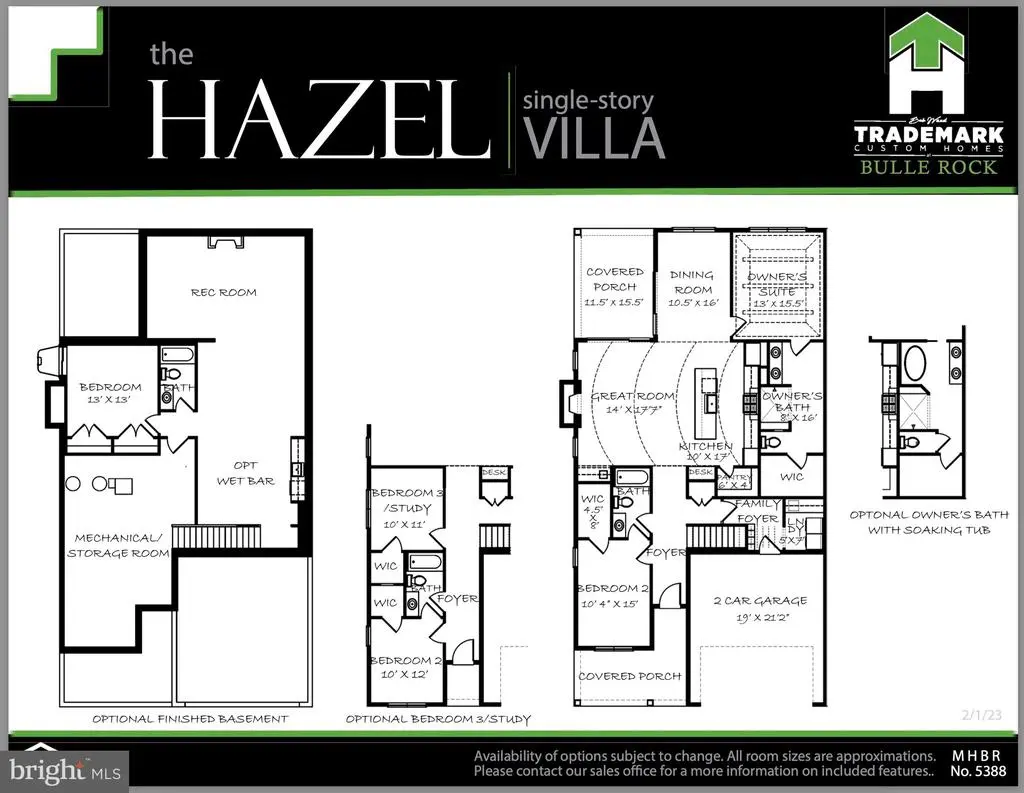 These luxurious 2-3 bedroom ranch-style Villas in the exclusive gated community of Bulle Rock are waiting for your finishing touches. This stunning residence boasts unparalleled elegance and modern sophistication, offering a lifestyle of comfort and refinement. The gourmet kitchen is a culinary enthusiast’s paradise equipped with top-of-the-line appliances, custom cabinetry, and expansive countertops. Ideal for both everyday meals and lavish entertaining. Embrace a sustainable lifestyle with state-of-the-art energy-efficient appliances and systems that ensure both eco-friendliness and cost savings, including argon-filled low-e windows, high seer-rated air conditioning systems, fresh air make-up, whole-home humidifiers and more. The inviting living area features a cozy gas fireplace, perfect for relaxing evenings and creating a warm ambiance throughout the year. Customize your space with an optional finished basement—ideal for a home theater, gym, or additional living or sleeping quarters as needed. Optional lots that feature pond or wooded views. Enjoy the security and tranquility of a gated community offering premium amenities and a sense of belonging. Including indoor and outdoor pools, a full gym, tennis and pickleball and more! Experience the epitome of luxury living with this exceptional villa—where every detail is customizable and crafted to perfection.