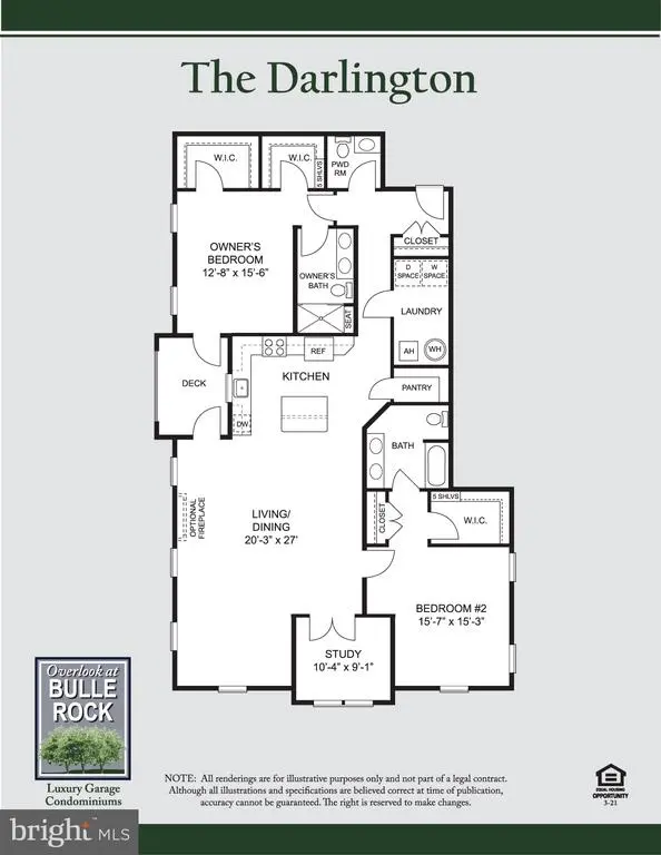 DARLINGTON MODEL HOME FOR SALE - LIMITED OPPORTUNITY -. The Darlington is our largest plan and offers 2 spacious bedrooms, 2 full baths with the added bonus of a powder room. This plan also offers a private study and kitchen island. This is our most POPULAR layout. The kitchen comes with all appliances and walk-in pantry and opens to a spacious living/dining room area that has access to your private balcony. The balcony is also accessible from the Owner's suite. The uniqueness feature of this plan is it is the only one with windows on 3 sides which brings in an abundance of natural light from any floor. This home only shares 2 walls with other homes. A spacious laundry room and pantry allow for plenty of storage. Custom paint and trim. Open Friday-Tuesday 11-5 Visit Model located at 403 Bold Ruler Ct.