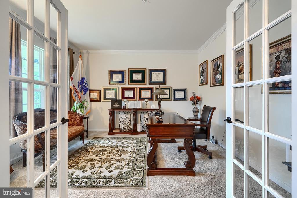 Welcome to 734 Falcon Lane, a spacious and thoughtfully designed home in the Eagles Rest community of Aberdeen. Built in 2016, this 4-bedroom, 3.5-bath colonial offers over 5,400 square feet of finished living space across three levels—designed to support comfort, function, and connection. The main level features an open-concept kitchen with granite countertops, stainless steel appliances, a center island, and a morning room—ideal for gathering or entertaining. The adjacent family room flows seamlessly into the kitchen, and a glass French-door office provides a quiet workspace or flexible bonus area to fit your needs. Upstairs, the primary suite includes two walk-in closets and a private sitting area, offering a true retreat. The upper level also features a dedicated laundry room, a separate loft-style sitting area, and three additional spacious bedrooms with access to a full bath. The fully finished walkout basement includes a home gym and a theater room, creating dedicated spaces for both wellness and relaxation. Outside, the rear deck is a true entertainer’s space, complete with ambient lighting, TV hook-ups, and plenty of room for seating or hosting gatherings. Set on a generous lot in a well-connected neighborhood just minutes from APG, shopping, and commuter routes, this home offers the lifestyle flexibility today’s buyers are seeking—with room to grow, gather, and thrive