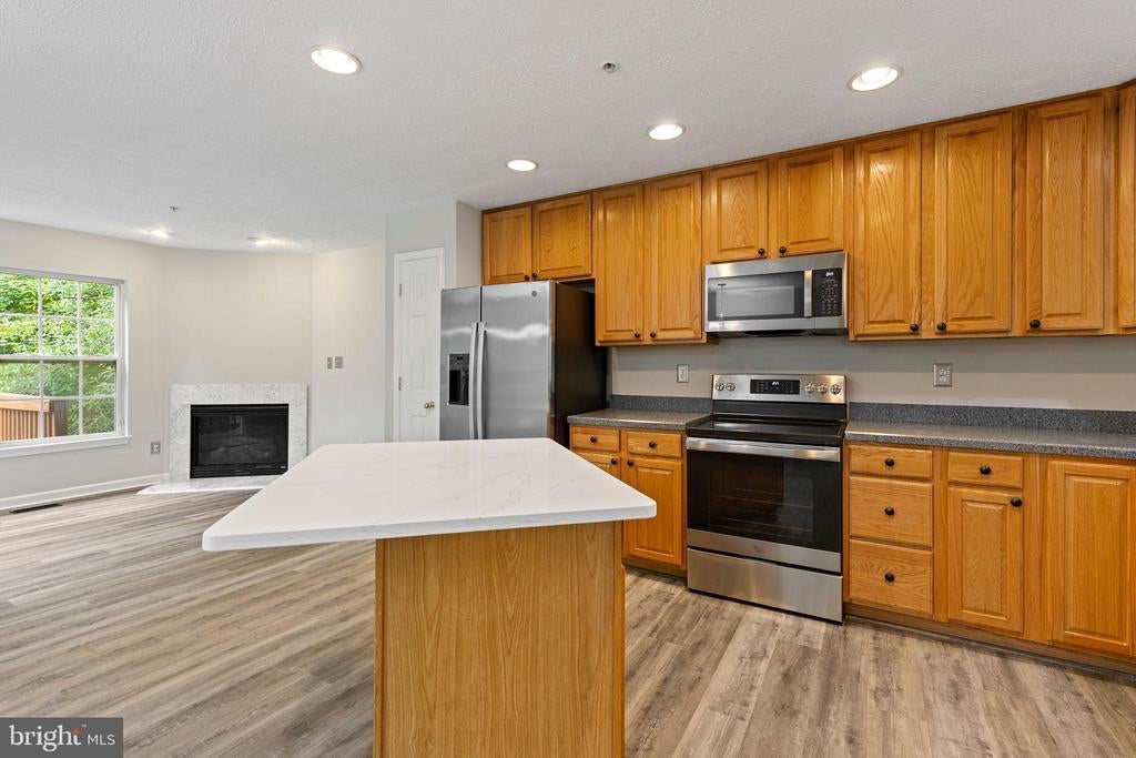 Welcome to the sought-after Hollywoods community! This 3-bedroom, 2 full and 2 half-bath end-of-group Colonial townhome offers three finished levels of versatile living space and has been thoughtfully updated for modern living. Inside, the home features new LVP flooring on the entry and main levels, fresh carpet, and updated paint throughout. The kitchen boasts all stainless steel appliances (2 years old), a new quartz countertop on the island, a breakfast nook, and a pantry, while the dining area is accented by a gas fireplace for added warmth and character. Two new sliding glass doors—one on the ground level and another on the main level—bring in natural light and provide easy access to the outdoors. Upstairs, you’ll find three spacious bedrooms and two full baths, including a private primary suite with vaulted ceilings, a walk-in closet, and a relaxing bathroom with a soaking tub and separate shower. The entry level offers additional finished space, perfect for a family room, home office, or play area, with a walkout to the rear yard and an extra half bath for convenience. Major system updates include a new AC unit (2024), water heater replaced in 2024, and the original Carrier gas furnace in excellent working order. An attached garage, concrete driveway, and ample street parking add everyday practicality. Situated in the desirable Hollywoods neighborhood, this home offers easy access to everyday essentials, local parks, schools, and commuter routes—making it an ideal blend of comfort and convenience.