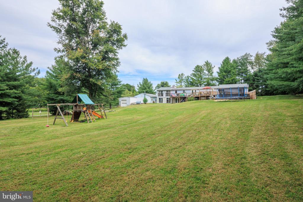 Spacious 3-bedroom, 3-bath rancher with walk-out lower level, nestled on a picturesque 2.14-acre lot lined with mature pines in Northern Harford County. This expansive home features generously sized bedrooms—large enough to divide for additional rooms—highlighted by a massive 17x10 primary walk-in closet. The fully finished lower level is ideal for multi-generational living, with a second full kitchen, brick fireplace, and private entry—functioning perfectly as an in-law suite. Both kitchens have been recently updated, offering modern convenience throughout. Upstairs, enjoy cozy evenings with a wood stove in the second bedroom, and central air conditioning and oil heat keep the home comfortable year-round. Additional features include a wheelchair-accessible ramp, a large deck overlooking the scenic lot, and an above-ground pool perfect for entertaining. A detached 3-car garage with its own furnace offers the perfect year-round workshop. Key updates include (2) 50-gallon water heaters (2015/2016), oil tanks (2017/2018), a new roof (2017), and an oil furnace (2010). While the home offers incredible space and utility, it invites your personal touch with cosmetic updates—a rare opportunity to own a truly versatile home on an impeccable lot.