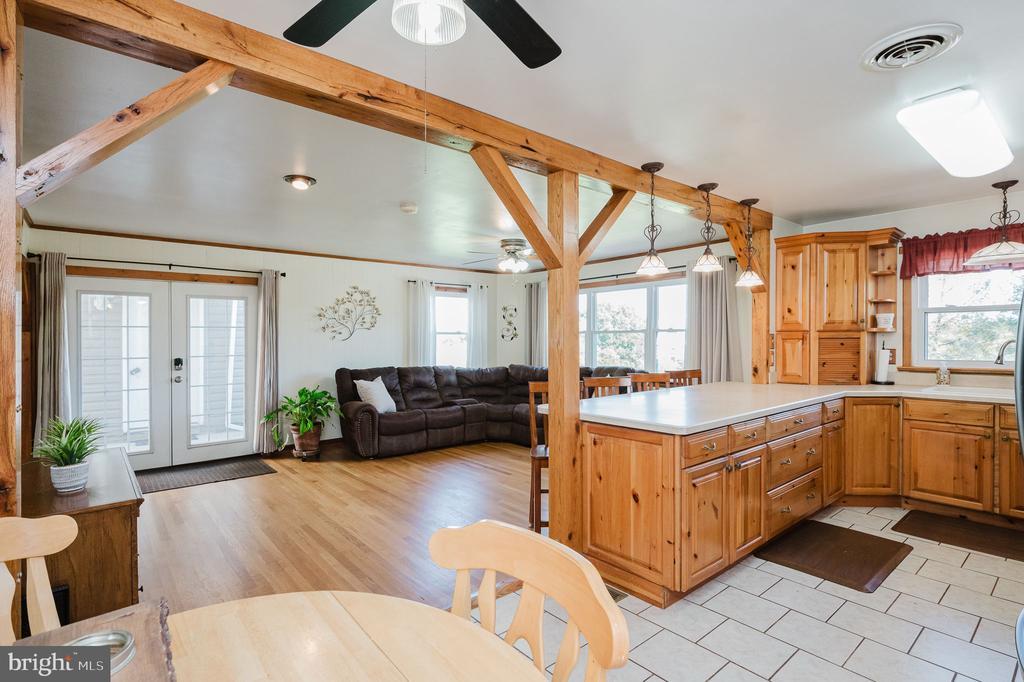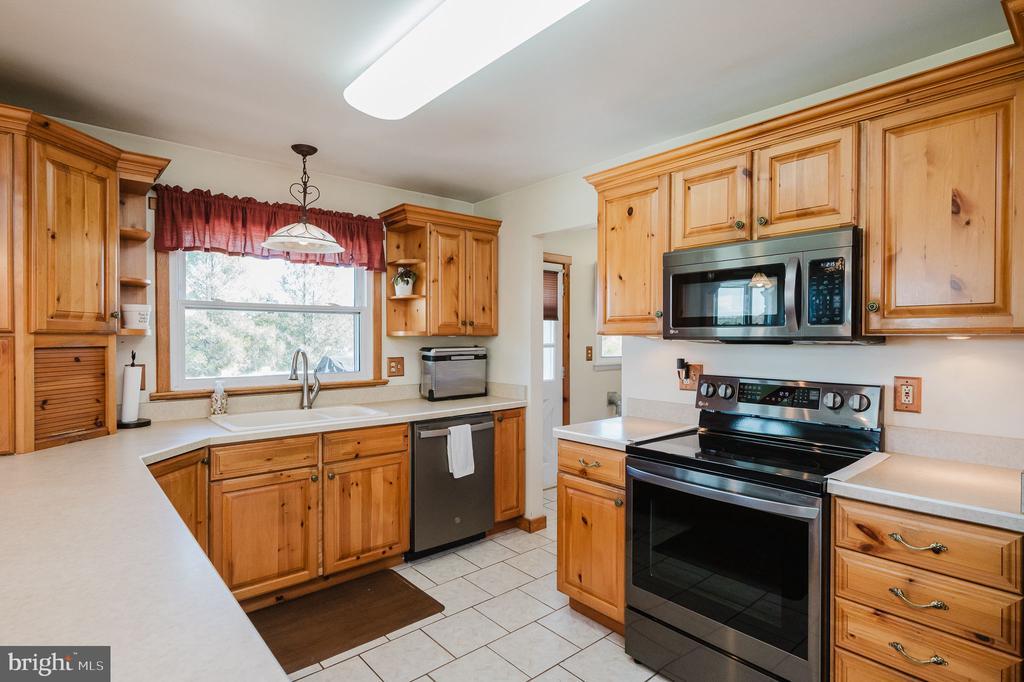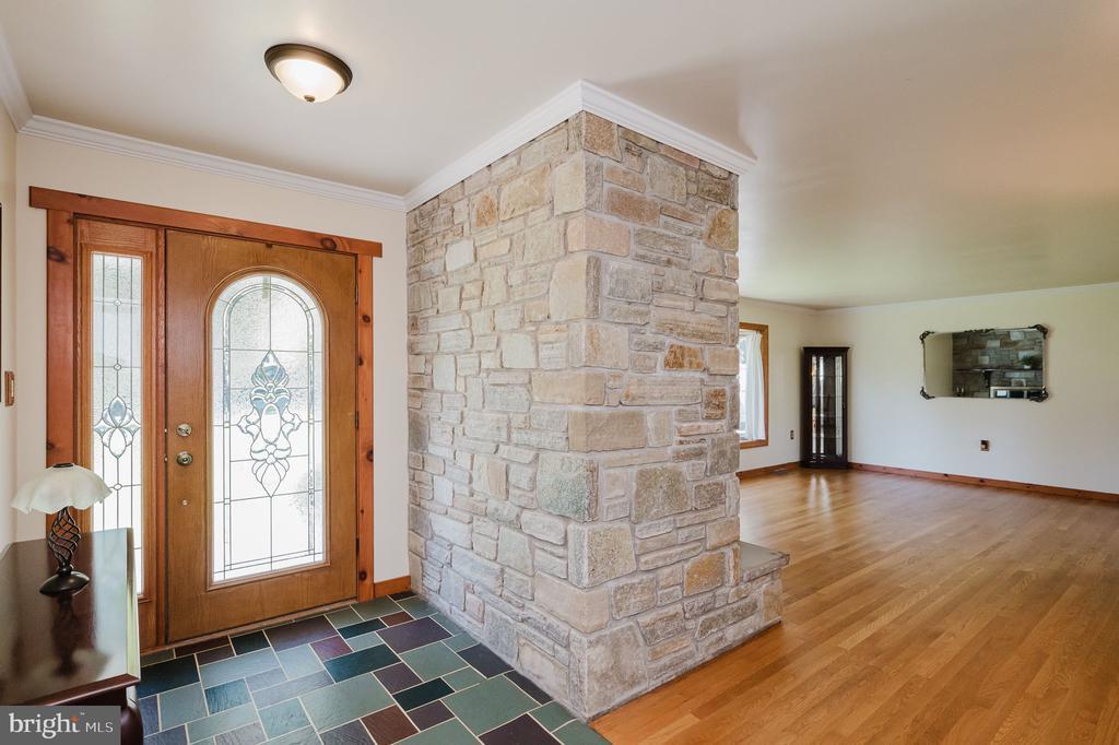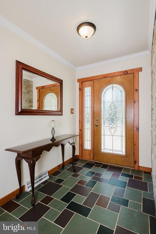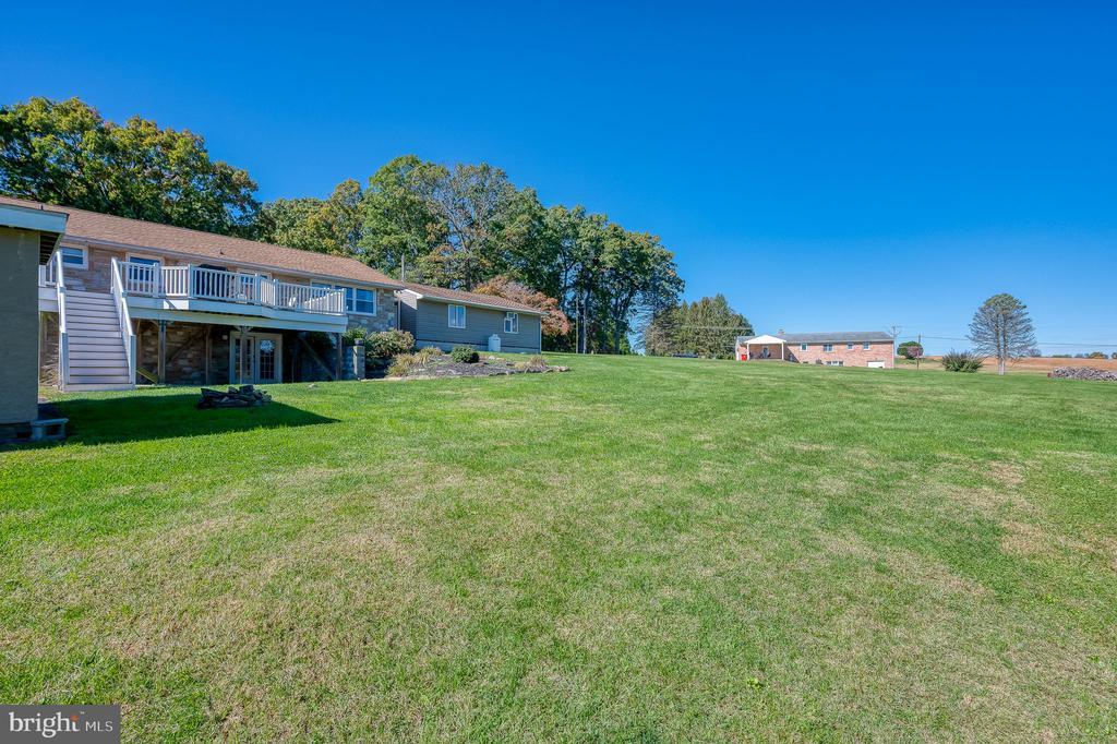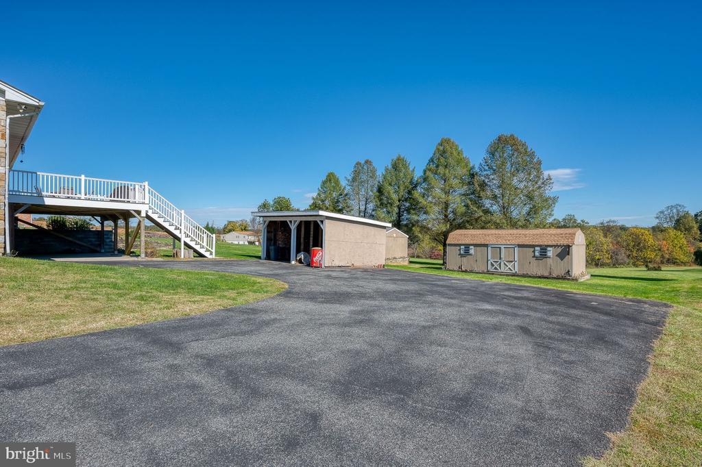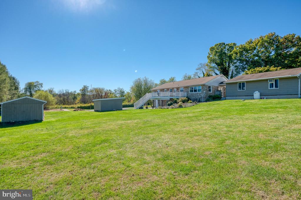 Welcome to this charming stone rancher featuring an oversized two-car garage with electric. This home features five bedrooms and 3.5 bathrooms. The main level offers beautiful hardwood floors, convenient laundry closet and wood burning fireplace in the bright family room with crown molding and bay window. The updated eat-in kitchen has a breakfast bar and stainless steel appliances and is open to the living room. The primary suite has a renovated primary bathroom with pocket door access. There are two more bedrooms along with another full bathroom. You'll find a walk-in storage closet/pantry in the hall. The walkout lower level is also finished with two more bedrooms and 1.5 bathrooms. It has a large rec room with wood stove, office, storage and kitchenette - perfect for guests or an in-law suite. It exits to a large patio and additional parking. Outside you'll also find peaceful, quiet surroundings along with two storage sheds, a run-in shed, and a breezeway connecting the house and garage. Entertain on the huge maintenance-free deck or your expansive patio and yard.