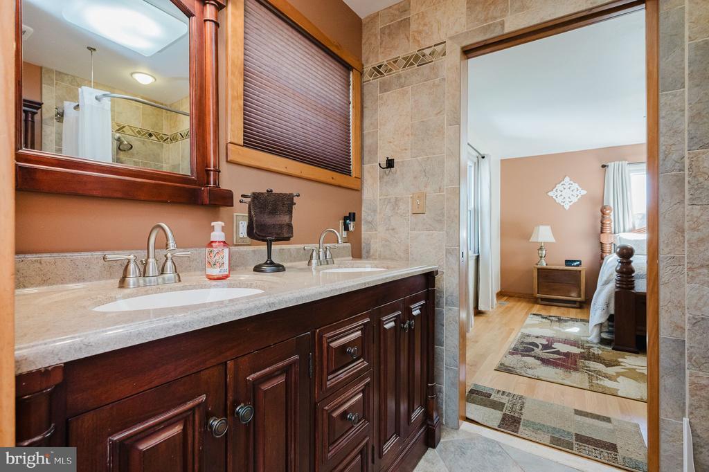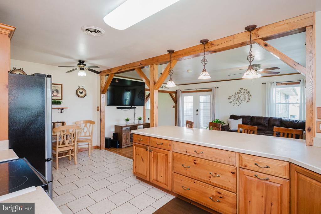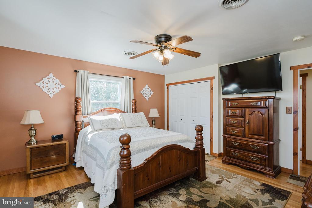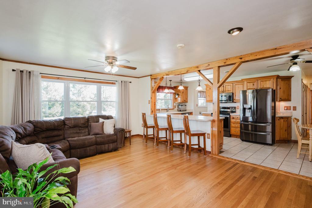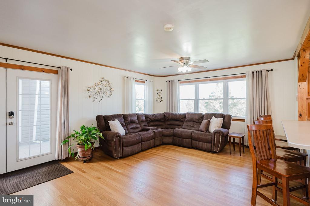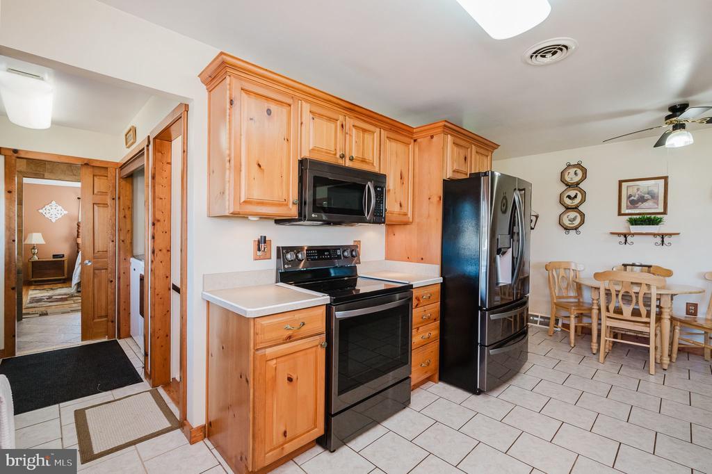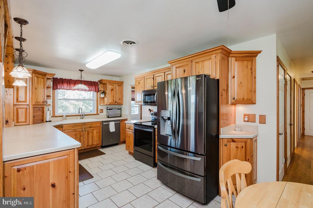Welcome to this charming stone rancher featuring an oversized two-car garage with electric. This home features five bedrooms and 3.5 bathrooms. The main level offers beautiful hardwood floors, convenient laundry closet and wood burning fireplace in the bright family room with crown molding and bay window. The updated eat-in kitchen has a breakfast bar and stainless steel appliances and is open to the living room. The primary suite has a renovated primary bathroom with pocket door access. There are two more bedrooms along with another full bathroom. You'll find a walk-in storage closet/pantry in the hall. The walkout lower level is also finished with two more bedrooms and 1.5 bathrooms. It has a large rec room with wood stove, office, storage and kitchenette - perfect for guests or an in-law suite. It exits to a large patio and additional parking. Outside you'll also find peaceful, quiet surroundings along with two storage sheds, a run-in shed, and a breezeway connecting the house and garage. Entertain on the huge maintenance-free deck or your expansive patio and yard.