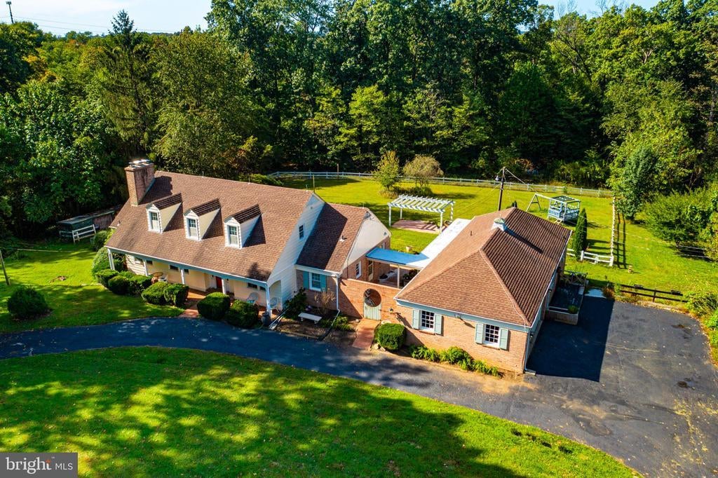 Welcome to Windwood: where meticulous pride of ownership truly shows on this classic Cape Cod on nearly 10 acres of serene, private land. With an expansive 4-bedroom main house and separate guest cottage; this home is perfect for a multi-generational family who are looking for separate spaces or for a family looking to generate more income by utilizing the guest house as a rental. This home really epitomizes quality 1960's construction and craftsmanship: solid brick and cedar siding, southern pine hardwood floors throughout, elegant keyhole crown moldings, a wonderful dining room fireplace, built-in shelving and cabinets, timeless dormers, and so much more. Coming up the circle drive you are received by a peaceful front porch; perfect for enjoying summer breezes and sunsets. Inside you are greeted to a welcoming foyer with a formal living room to your right and massive dining room to your left complemented by a wood-burning fireplace with intricate wood mantle. Moving back you will find the private main-floor primary suite with ensuite and large walk-in closet. The first floor further features a TV room and a recently renovated sun-room bump. out. Continuing on, the spacious kitchen with breakfast area was renovated in 2021 and now features honey-oak built-ins, custom cabinets, granite countertops, stainless steel appliances, propane or electric stove, a generously sized island with overhang seating, and LVP flooring. As you take the wide staircase upstairs you will find more gleaming hardwood floors that were just refinished. The second floor has three generously sized bedrooms; each with large closets and a smaller office space. Each end of the second floor features large attic storage areas. The full basement is partially finished with a spacious rec or workout room with a wood burning stove and new LVP floors. Across the brick breezeway, the guest house has also been recently renovated including all new kitchen appliances, walnut cabinets, washer/dryer, new floors, and upgraded bath. In front of the guest house is an attached two-car garage with additional areas for storage and tools. The backyard is a gardener’s dream and is fully fenced for the dogs and/or little kids. A small garden area, pergola and small fishpond complete the peaceful surroundings. Several walking trails have been cut out throughout the woods where you will find a large woodshed with plenty of storage. This wonderful property has so much to offer, you won’t want to miss it. Sellers have a $450,000 assumable VA Loan at a 2% interest rate. Recent updates include: roof tune up, exterior paint, interior hard floor refinish, interior paint, hvac service, and more.
