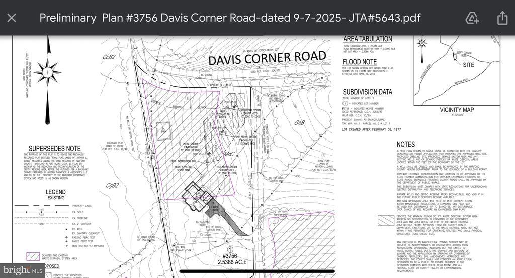 Discover the perfect canvas for your dream home on this beautiful 2.59-acre lot tucked away in a private setting with approximately 250 feet of road frontage. This ready-to-build lot offers both seclusion and convenience. Highlights include approx. 250 ft of road frontage, No Builder Tie-In! Choose your own builder and design your ideal home. Utilities & Site Features include Existing well installed in 1984, recently pump tested on October 1, 2025 (Disclosure available), 3 Approved Septic perc holes meeting new build standards for a 4–5 bedroom home (Disclosure available), Electric already at site, Barn: 30’ x 40’ barn on site with electric (seller unsure if working, buyer to verify), and existing well line from the main well. Structure is present, but all components are "As Is" or the seller can remove. No impact fee required (valued at approximately $10,000) — per Harford County Government guidelines. This lot offers the best of both worlds — a peaceful and private location surrounded by nature, while still being just minutes from local amenities, schools, and major commuter routes. With no builder tie-in, you have the freedom to select your own builder and bring your vision to life. With an existing well, approved perc, and no impact fee, much of the prep work is already complete — saving time and money.