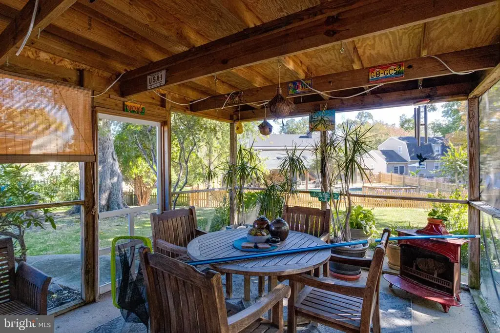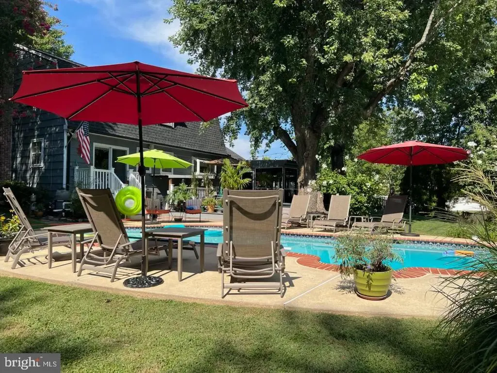 Welcome to this 3 bed, 2.5 bath single family home with a one car garage, in-ground saltwater pool and arguably one of the best yards in Joppatowne. This colonial home sits back at the end of a quiet court in a residential neighborhood within walking distance to the park, marina, shopping and dining and only a short couple minute drive to Rt 40. Walking into the main floor brings you to a floor covered in hardwood flooring throughout with a large living room area to the right and a formal dining room area to the left. The dining room opens up into the kitchen which has granite countertops, tile flooring, backsplash, custom cabinetry and stainless steel appliances. A door off of the kitchen leads out to the one car garage for easy in and out access. Back in the large living room area there is an electric fireplace and a full bath next to the back door making it convenient for those using the pool. Sliders off of the living room open up to a small rear porch that walks down to a large paver patio surrounding the saltwater pool. To the right is a composite deck, followed by a screened in three season room perfect for outdoor dining or relaxing in the shade. The beautiful rear yard is over a 3rd of an acre and fully fenced with a mixture of cleared spaces and trees, it is truly a haven for relaxation and fun. Back inside, taking the stairs to the second floor brings you to a floor completely covered with bamboo flooring throughout. Up here is 3 large bedrooms and a full modern bath with tub/shower combo. Heading downstairs to the basement brings you to a large finished living room/recreation room with lvp flooring throughout and a wood stove. There is also a large utility storage area with laundry facilities, and a half bath for convenience. This home has been well maintained, with only a 4 year year old roof, new hot water heater, new windows done in 2024, and new plumbing. Come see why this amazing yard and home should be yours today!
