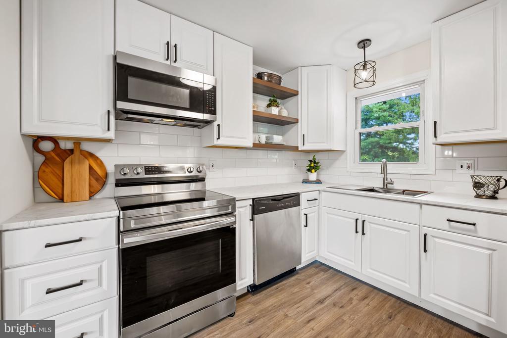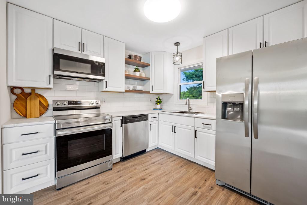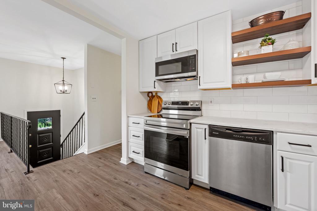 Welcome to 3502 Lark Drive, a beautifully remodeled 4-bedroom, 2-bathroom split-foyer home tucked away on a quiet street in Aberdeen. Set on a spacious corner lot, this home combines modern updates with comfort and convenience. The main level features luxury vinyl plank flooring throughout the bright and open living room, dining area, and kitchen. The kitchen is a true showstopper with sleek countertops, stainless steel appliances, white cabinets, and a subway tile backsplash. Down the hall, you’ll find a stylishly updated full bathroom with a tiled tub/shower surround and three bedrooms, all with brand-new carpeting. The lower level offers a large recreation room with a cozy fireplace, a second full bathroom, one additional bedroom, and a bonus room perfect for an office or additional storage. Step outside to the expansive rear deck, ideal for entertaining or relaxing while overlooking the large backyard. A storage shed, attached carport, and private driveway add to the home’s practicality. Further upgrades include a brand-new HVAC system and all new windows. Situated in a peaceful neighborhood, on a corner lot, this home offers a quiet retreat while still being close to all that Aberdeen has to offer, including local shops, restaurants, and easy access to I-95, APG, and commuter routes. Move-in ready and fully updated, this home is a must-see!