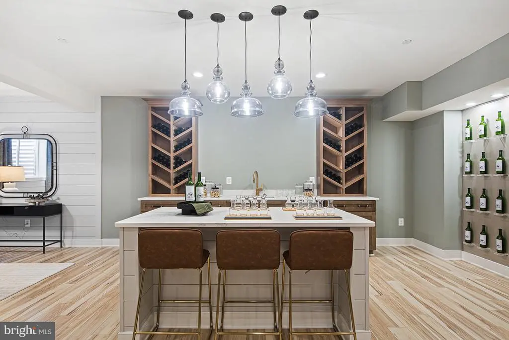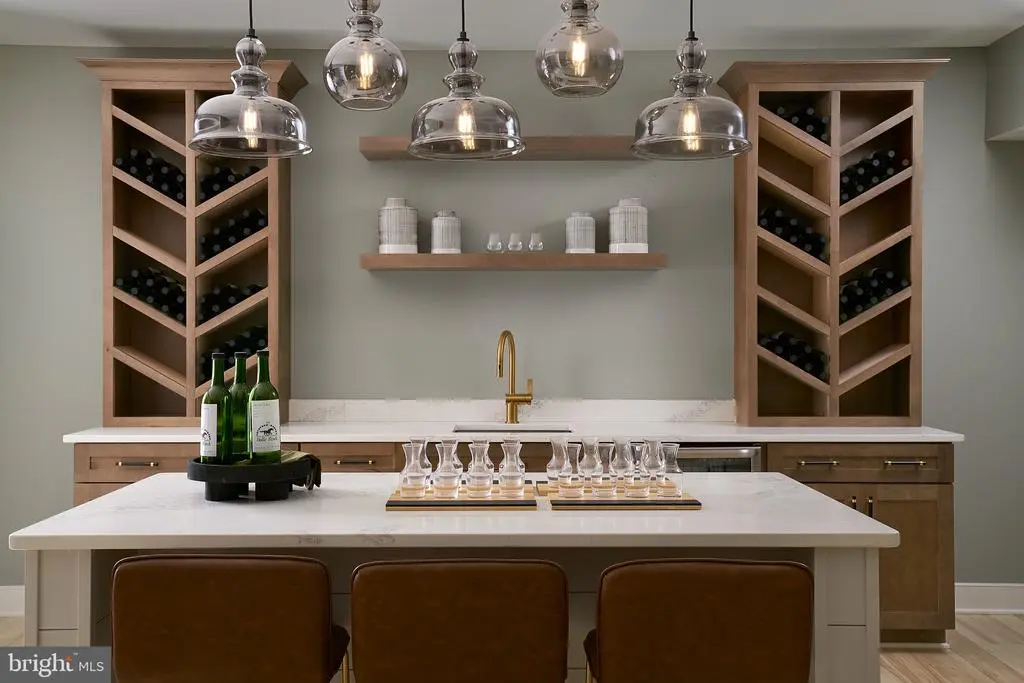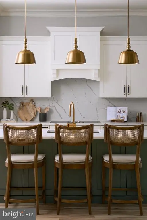 Experience refined living in this exceptional detached home in the prestigious gated community of Bulle Rock in historic Havre de Grace, Maryland. Every detail of this residence has been thoughtfully designed to blend timeless craftsmanship with modern luxury. The main level impresses with a gourmet kitchen featuring quartz countertops, designer backsplash, gold fixtures, and a custom walk-in pantry. The formal dining room showcases a stunning brick groin-vault ceiling—an architectural centerpiece that elevates every gathering. The main floor primary suite offers a serene retreat with a coffered ceiling and a spa-inspired bath complete with a zero-threshold shower and floating vanity. The finished lower level is built for both fun and function, featuring a custom wet bar, dedicated playroom, and a one-of-a-kind indoor dog house. Outdoor living is equally impressive, with a covered porch, fireplace, and striking tile accent wall—perfect for entertaining or relaxing year-round. Residents of Bulle Rock enjoy world-class amenities, including a 37,000 sq. ft. Residents’ Club with full gym, indoor and outdoor pools, tennis and pickleball courts, and more—all within a secure, resort-style community just minutes from the charm of downtown Havre de Grace. Luxury, comfort, and craftsmanship come together beautifully in this one-of-a-kind Bulle Rock home.