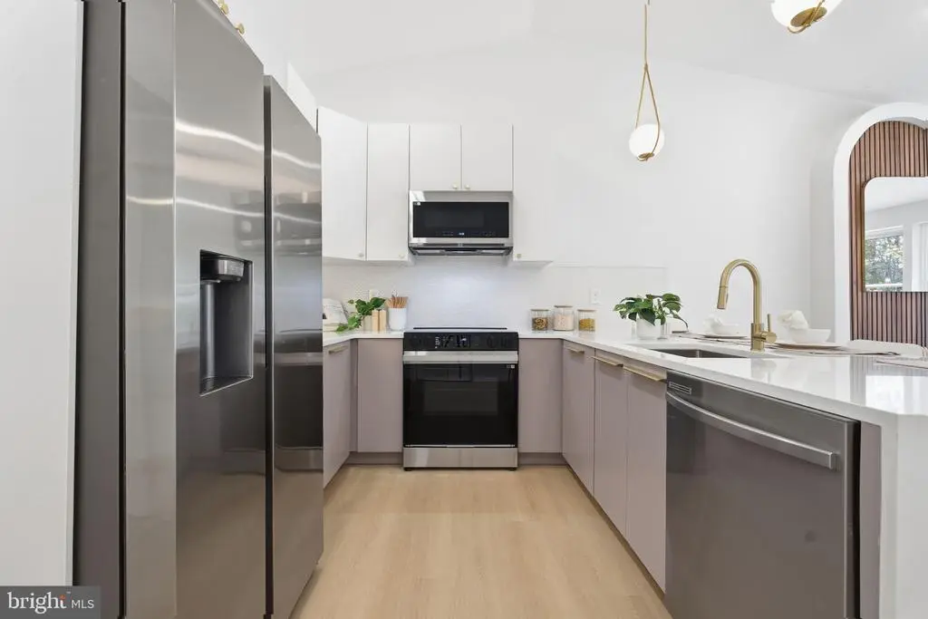 Step Into This Executive Style Townhome Where Modern Living Meshes with Expert Contemporary Design. Offering a Bright Open Floor Plan w/Cathedral Ceilings & New European Oak LVP Throughout. Custom Two-Tone European Kitchen w/ White Quartz Counters, Waterfall Peninsula, Tile Backsplash, Gold Accents & Samsung Stainless Steel Appliances. Primary En-Suite w/ Fireplace, Custom Tile Shower & Floating Vanity. Main Bath Offers Vertically Stacked Subway Tile, Delta Tub, Floating Vanity & Towel Warmer. Updates Include New HP w/CA, Windows, Electric, Plumbing in 2025 & Roof 2019. Rear Oasis with New Venetian Style Privacy Fence, Pergola & Patio Perfect for Relaxation & Entertainment. Make This Your Home Today!