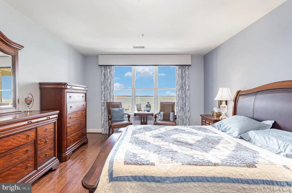 Welcome to Heron Harbor. Luxury water front living at the top of the Chesapeake in beautiful historic Havre de Grace. Gently lived in and lovingly cared for by the original owners. Entrance has a long signature arched hallway with accent lighting. This 4th floor end unit has 3 Bedrooms and 2 full baths with heated seat bidets. The kitchen has extra wide custom counters and extra cabinets, recessed lighting and a walk in pantry. The dining area has large side windows with northerly river and bridge views. Main level hardwood floors, custom built in shelving and a beautiful custom stone gas fireplace in the living room. Tiled balcony with amazing water views. Primary suite with separate shower, jet tub, double vanity and private toilet. Custom built in desk in 3rd bedroom will make a great office. Your hair and skin will really appreciate the whole house carbon water filter system. This home also has a specially designed noise reduction system, UV air sanitizer and HEPA filtration for superior air quality. Natural gas heat and central air with a second ductless heat pump in primary suite for maximum comfort and cost efficiency. Extra hallway storage room, elevator service and gated parking. Optional community pool membership and boat slips available. Walk outside and enjoy the world class promenade and historic lighthouse at Concord Point Park. Find out why Heron Harbor is known for its luxurious waterfront living. Call for an appointment.