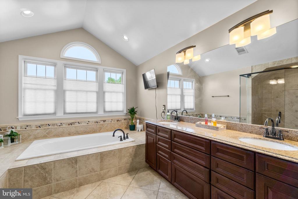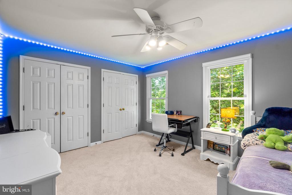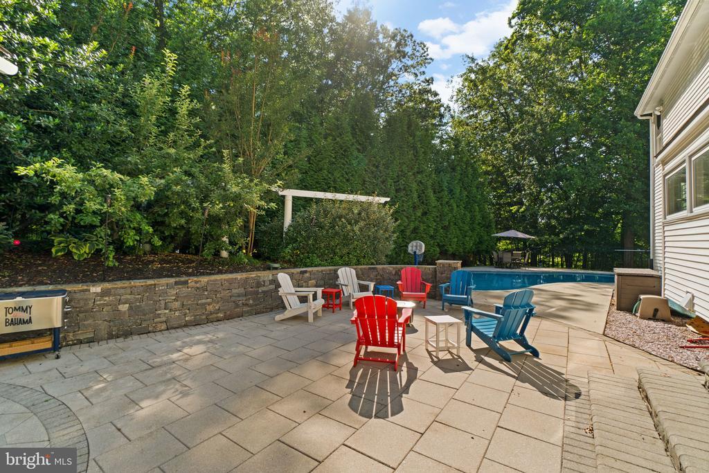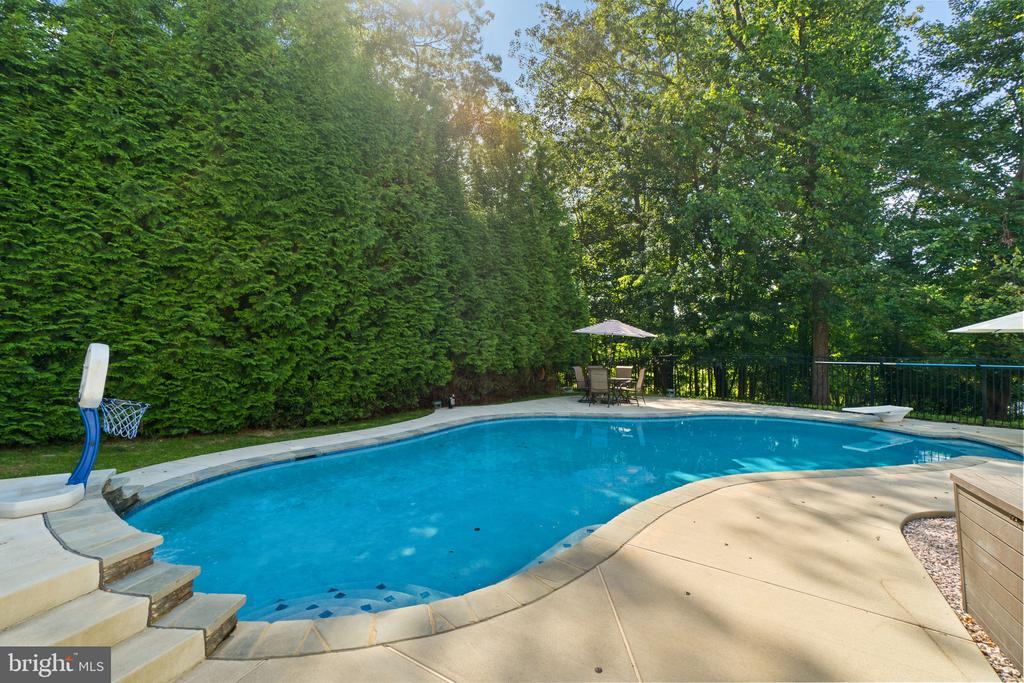 Welcome to this meticulously maintained 5-bedroom home in the highly sought-after Waverly Woods community. From the moment you enter the welcoming two-story foyer, you'll appreciate the quality and care throughout. Just off the foyer, French doors open to a private home office, ideal for today's remote work needs. The formal living and dining rooms feature elegant crown molding, with the dining room also showcasing detailed wainscoting for added charm. The spacious eat-in kitchen is a dream, offering granite countertops, a large center island with seating, stainless steel appliances including a gas cooktop and double wall ovens, and plenty of cabinet space. A sliding French door leads from the kitchen to a beautifully designed outdoor retreat—complete with an expansive patio, stone wall, pergola, and a sparkling, heated saltwater in-ground pool, all set against a wooded backdrop for added privacy. The family room is warm and inviting, featuring refinished hardwood floors (2017) and a floor-to-ceiling brick fireplace. A convenient half bath is also located on the main level, while large windows throughout the home fill the space with natural light. Upstairs, you'll find five generously sized bedrooms, a hall bath with double sink vanity, and a dedicated laundry room. The luxurious owner's suite includes two oversized closets and a spa-like ensuite bath with a large shower, separate soaking tub, and a double sink vanity. One additional bedroom has an attached bath that also connects to the hallway—perfect for guests. The finished lower level offers incredible versatility with a large open area ideal for a media room and home gym, a full kitchen, a full bathroom, and an additional room that can serve as a sixth bedroom or second home office. With a private entrance, this level is perfect for an in-law or guest suite. Additional highlights include a two-car garage, mature landscaping, and a fully fenced backyard backing to woods for serene privacy. All windows were replaced in 2017, with triple-pane windows along the rear of the home for added energy efficiency and enhanced sound insulation, further supported by dual-layer sheetrock. Other updates include two new HVAC units (2017), pool and fencing (2020), new front walkway and resurfaced asphalt driveway (2021), new water heater (2022), and fresh paint and carpet throughout (2025). This exceptional home truly offers it all—space, updates, privacy, and an unbeatable location. Don’t miss your chance to make it yours!