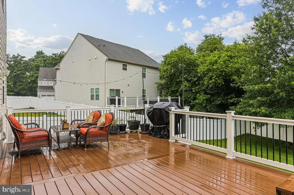 Welcome to 8423 Jacqueline Court, a beautifully maintained home offering over 2,600 square feet of finished living space across three finished levels. Located in the desirable Pleasant Chase community, this four-bedroom, two-and-a-half-bath home was built in 2012 and thoughtfully updated with modern finishes and functional upgrades including new painting and flooring throughout. The main level features an open and airy layout with luxury vinyl plank flooring, fresh paint, and abundant natural light. A spacious family room flows seamlessly into a large dining area and a well-appointed kitchen with 42-inch cherry cabinets, mosaic tile backsplash, a central island, and direct access to the deck overlooking the fully and newly fenced backyard—ideal for outdoor entertaining or peaceful relaxation. The entry area flows into the living room which offers a comfortable sitting area perfect for conversation or quiet relaxation near the front of the home. Upstairs, you’ll find four generously sized bedrooms including a spacious primary suite complete with a walk-in closet and a private en-suite bath with a double vanity. The additional bedrooms are light-filled and versatile, easily accommodating guest rooms, work-from-home setups, or creative play spaces. A full hall bathroom and additional storage complete the upper level, providing comfort and convenience for the whole household. The finished lower level offers incredible bonus space with a large recreation room perfect for movie nights or gaming, a separate exercise room with ample room for home fitness equipment, and additional storage to help keep things organized. Step outside to enjoy the expansive deck which provides the perfect setting for summer barbecues, morning coffee, or evening gatherings. The yard, the largest in the neighborhood, is fully fenced, creating a private and secure space for pets, play, or gardening. Backing to trees, the outdoor space offers a serene extension of the home’s living areas. Notable upgrades include a brand new architectural shingle roof (2025), EV charger installation (2024), and luxury vinyl plank flooring installed on the main level. The backyard was also recently enhanced with a fully enclosed fence and deck. The home includes an attached two-car garage plus a four-car driveway for plenty of parking. Located just minutes from BWI Airport, the MARC train station, and major commuter routes including I-95, Route 1, Route 32, and 295, the home offers both suburban comfort and commuter convenience. This is a rare opportunity to own a move-in ready home with modern upgrades, flexible living space, and an unbeatable location—schedule your showing today.