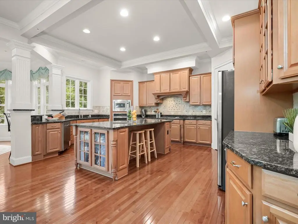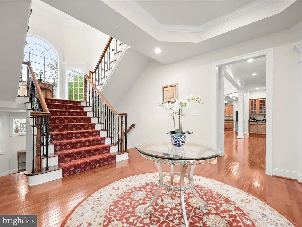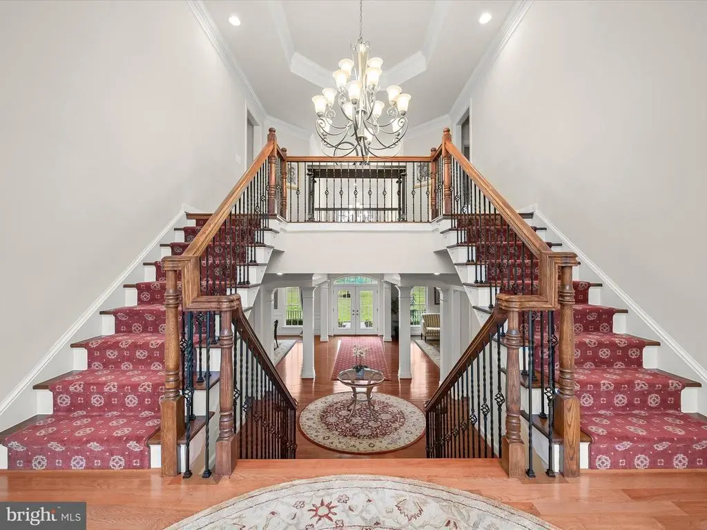 Welcome to this stately NV Mount Vernon residence in the sought-after Schooley Mill Farm community. Set on 1.14 acres with a private drive, this 6-bedroom, 5.5-bath transitional-style home impresses with a brick front, soaring columns that define the covered porch, professional landscaping, and hardscaping that includes exterior lighting, rear paver patios, a circular stone seating wall, and a serene koi pond with a bridge. Enjoy outdoor living on the composite deck with vinyl railings, framed by tree-lined views. A 3-car side-load garage with EV charging station completes the exterior. Inside, a dramatic two-story foyer with fluted columns, tray ceiling, crown moldings and dual chandeliers opens to formal living and dining rooms. A conservatory, private study with French doors, and a two-story family room with coffered ceiling, Palladian window, and gas fireplace set the stage for elegant living. The gourmet kitchen features a commanding center island, two breakfast bars, professional-grade stainless appliances, walk-in pantry, butler’s pantry, and a breakfast room in the round with deck access. A mudroom with a built-in arrival bench and generous laundry room with custom cabinetry add everyday convenience. Upstairs, four ensuite bedrooms each feature private baths and walk-in closets, while the luxurious primary suite offers double French doors, tray ceiling, a sitting room in the round, and a spa-inspired bath with two separate vanities and three walk-in closets – one is an oversized bonus closet over the garage. A Juliette balcony adds charm between the secondary bedrooms. The daylight walk-out lower level is designed for daytime or evening entertainment with a full wet bar and back bar, recreation and card rooms, billiards space, media room, exercise room, two additional bedrooms with walk-in closets, a full bath, and abundant storage. This exceptional home blends timeless elegance, thoughtful design, and resort-style amenities in a spectacular location nearby one of Howard County's hidden treasures- Schooley Mill Park. Spanning 192 acres of meadows, woodlands, and wetlands, the park offers a peaceful retreat and abundant wildlife viewing. The park also features over four miles of scenic trails, a regulation-sized cricket field, baseball and softball diamonds, basketball and tennis courts, eight outdoor pickleball courts, and three public equestrian rings. Families and friends will enjoy the farm-themed inclusive playground, designed for children of all ages and abilities, with swings, slides, sensory play areas, and shaded picnic spots. With free parking, brand-new restrooms, water fountains, and multipurpose facilities, Schooley Mill Park is within walking distance and is a true community gem blending nature, recreation, and accessibility. Come home to a very special home and a very special location surrounded by opportunities to retreat in nature, or participate in robust outdoor activities for everyone of every age!