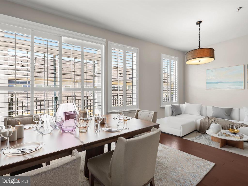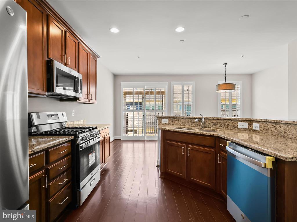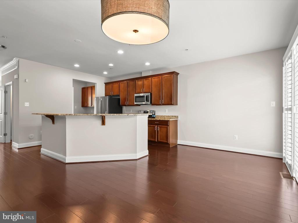This beautiful brick-front townhome offers three finished levels of comfortable living, plus a 2-car attached garage, all in the fantastic amenity rich Shipley's Grant community. Inside, you'll find a bright, open layout with stylish finishes and plenty of space to spread out. The entry level includes a flexible room that’s perfect for a home office, workout space, or extra hangout zone, with direct access to the garage for added convenience. Upstairs, the main level features gorgeous hardwood floors and a spacious open floor plan. The kitchen is a real highlight with a big center island, granite countertops, stainless steel appliances, and rich wood cabinetry. It flows right into the dining and lounge area, with sliding plantation shutter doors leading to a private balcony, great for morning coffee or evening unwinding. The top floor is home to the roomy primary suite with a walk-in closet and a spa-like bathroom, complete with a soaking tub, separate shower, and dual granite vanity. Two more bedrooms, a full hall bath, and a laundry room round out this level. The community offers great amenities like a swimming pool, and you’ll love the location, close to major commuter routes, shopping, dining, and plenty of entertainment options..